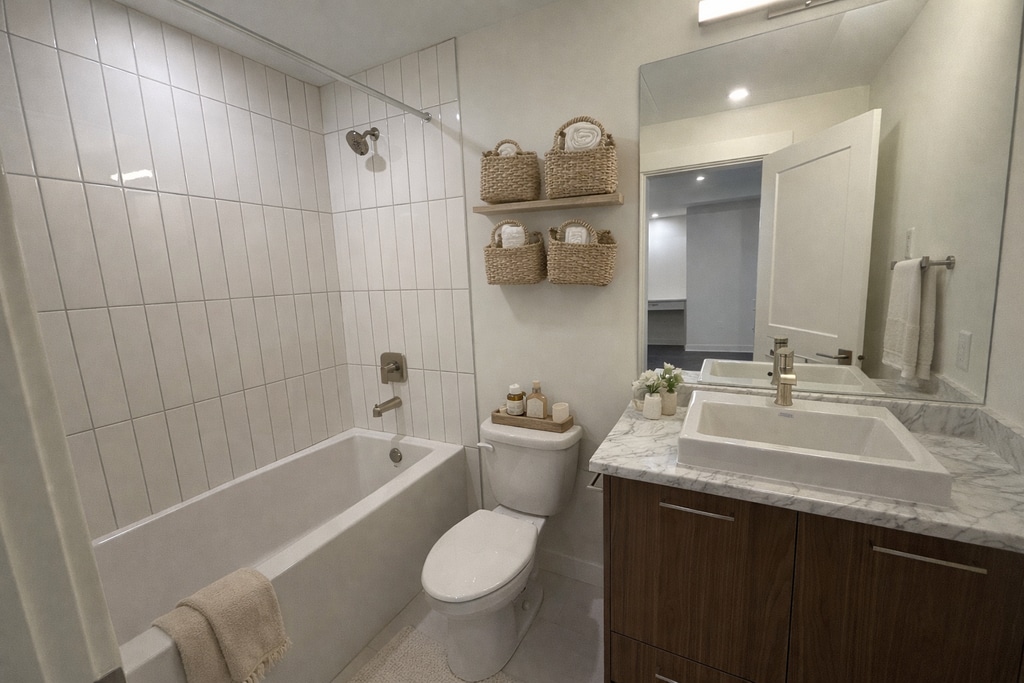 The D1.5 two-bedroom suite delivers generous space and modern design for comfortable living. With 873 sq. ft. of well-planned interior, these homes include a spacious kitchen with full-size LG appliances, in-suite laundry, and independent heat pumps in each bedroom and living space. Perfect for roommates or small families looking for both privacy and connection. The Hudson isn't just another apartment building—it's where modern comfort meets timeless quality. Thoughtfully designed with spacious layouts, premium finishes, and top-tier amenities, The Hudson offers a lifestyle that's as stylish as it is convenient.