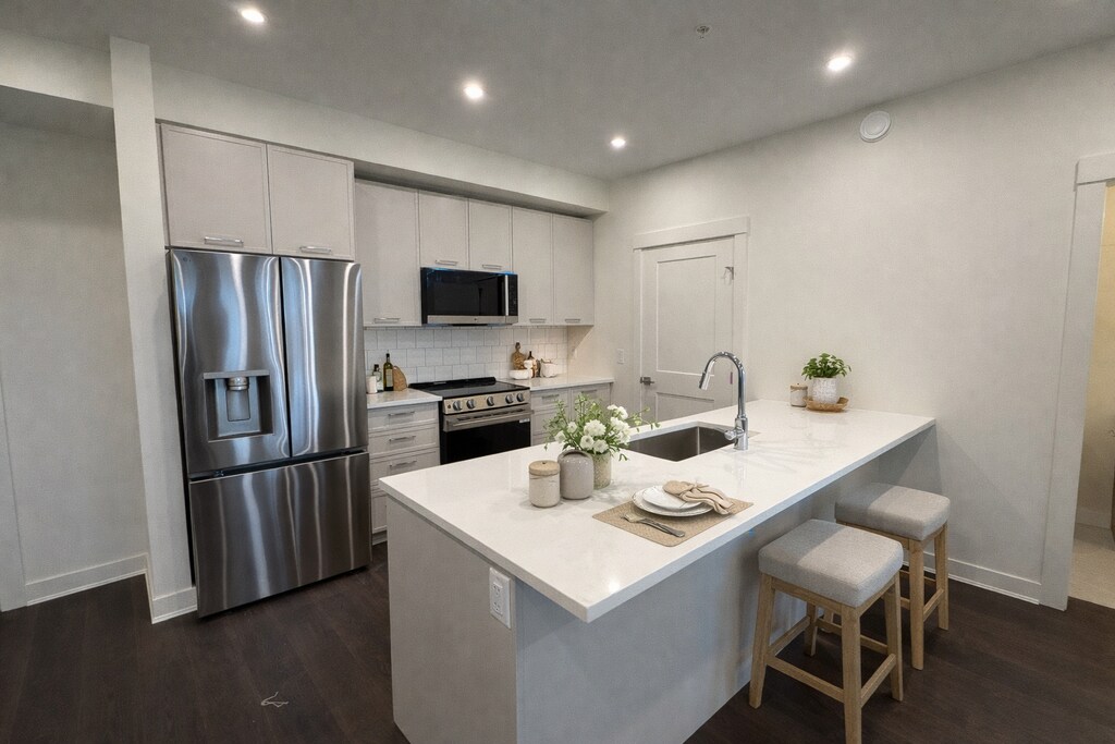 In this 902-sq.-ft. 2 Bed unit, clean design and efficient planning come together to create an inviting environment. Open movement throughout the unit enhances comfort, making each space feel connected yet purposeful. Each unit includes a kitchen with full-size LG appliances, in-suite laundry, and independent heat pumps in each bedroom and living space. This blend of thoughtful planning and quality finishes establishes a truly enjoyable living space. Positioned near peaceful outdoor spaces and vibrant local hubs, this unit provides convenient access to parks, trails, eateries, and transit options. It's an ideal location for those who value both calm surroundings and urban accessibility. The Hudson isn't just another apartment building—it's where modern comfort meets timeless quality. Thoughtfully designed with spacious layouts, premium finishes, and top-tier amenities, The Hudson offers a lifestyle that's as stylish as it is convenient.
