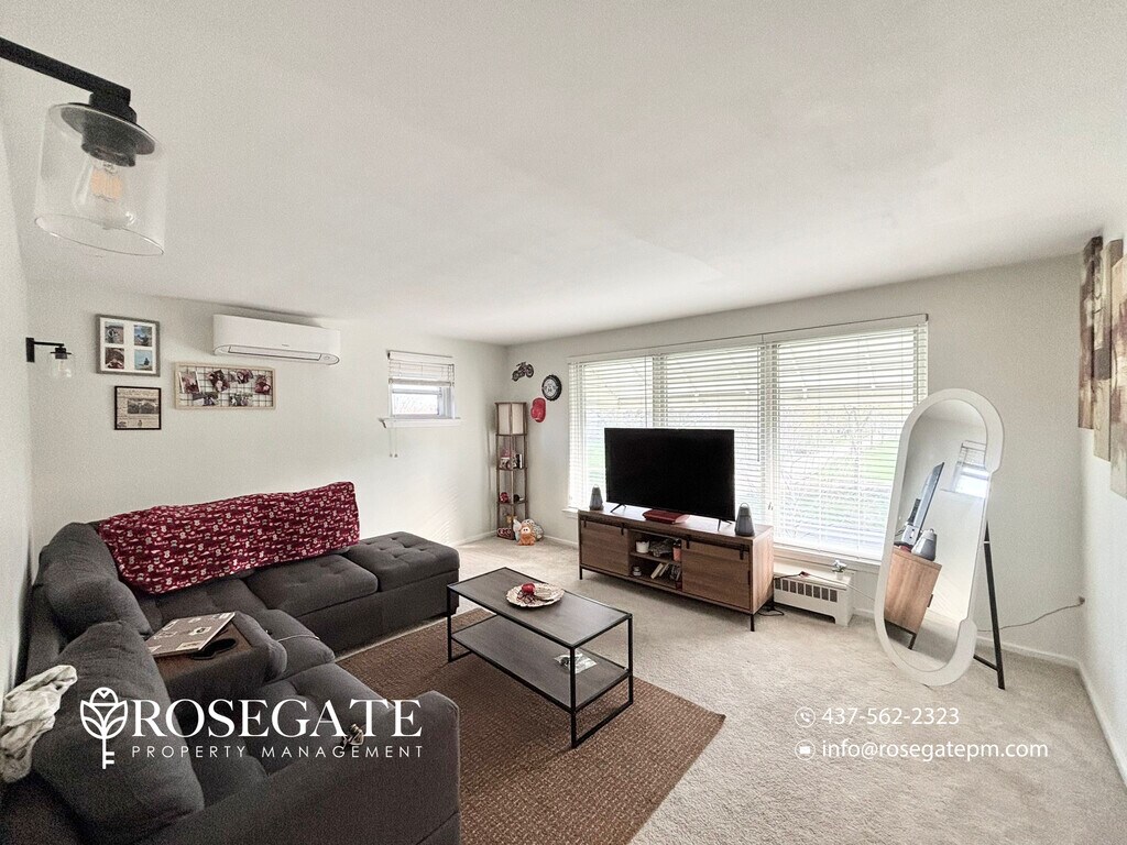 Bright 2-Bedroom Corner Apartment with Shared Backyard – Brampton Welcome to 2–54 Elliott Street, Brampton — a well-maintained corner unit apartment offering approximately 750 sq. ft. of comfortable living space.This unit features 2 bedrooms and 1 bathroom, making it a great option for small families, professionals, or roommates seeking a practical and well-located home.The primary bedroom includes a his and hers closet, providing added storage and convenience. The kitchen comes equipped with a microwave, and the unit also includes a window air conditioning unit and radiator heating for year-round comfort.Laundry is available on-site with pay-per-use washer and dryer, with cold water wash only.Tenants are responsible for hydro only, which is transferred into their name, helping keep overall utility costs manageable.Enjoy access to a shared backyard, offering outdoor space to relax.Located close to transit, shopping, parks, and everyday amenities, this professionally managed rental provides both comfort and convenience in Brampton.Book your viewing today.
