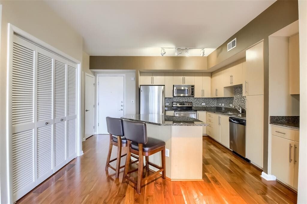 Modern Rainey Retreat | Direct Trail Access + Residents-Only Terrace *List Price represents $300 off first month Live at Milago in a beautifully updated 2-bedroom, 2-bath home in the heart of Rainey Street—where downtown convenience meets the outdoors. This 1,164 sq ft residence has an open layout, hardwood floors, and upgraded kitchen and bathrooms. The standout feature: a rare 3rd-floor setting with direct access to a residents-only community terrace and an open, unobstructed outlook—not facing another building or parking garage. Enjoy views over the dog park and quick access to the Lady Bird Lake Trail right outside the building. Home Highlights • Updated kitchen with quartz-style counters, breakfast bar, and stainless appliances • Bright living area with large windows and modern lighting • Two true bedrooms / flexible split layout for guests or a dedicated office • Both bathrooms upgraded with contemporary finishes • Reserved garage parking included • Pet friendly Milago Amenities • Rooftop pool + separate hot tub • 24/7 Concierge, business center, and enclosed lake-facing patio on the lobby level • Fitness center + resident club room • Secure mailroom + package receiving area Steps from Rainey’s restaurants and nightlife, and unmatched for outdoor access—Milago offers one of the most convenient connections to the Lady Bird Lake Trail.