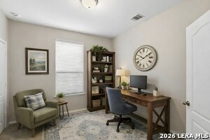 This move-in ready home offers a bright open-concept layout with a living and dining combo that flows into an island kitchen. The kitchen provides generous cabinet and counter space and includes refrigerator, washer, dryer, range, microwave, and dishwasher**. The **primary bedroom is located downstairs and features a separate tub and shower. Additional bedrooms provide flexible space for family, guests, or home office use. Flooring includes ceramic tile in common areas and carpet in bedrooms. The home also features ceiling fans, some window coverings, a two-car attached garage, and a private backyard. Conveniently located minutes from I-35, with access to shopping, dining, Randolph AFB, and SCUC ISD schools. Come tour today!