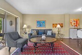 Charming, furnished corner unit with wood floors and flexible living space. The den converts easily to a second bedroom or a dedicated home office. Enjoy a bright screened porch with a peaceful view of a landscaped courtyard framed by mature canopy. The turnkey kitchen includes a brand new refrigerator, stove and microwave. The community pool is well maintained and often feels tucked away and quiet. Excellent East Boca location with easy I-95 access and just minutes to the beach, Mizner Park dining and shopping, and local conveniences. Ideal for first time buyers, seasonal residents or investors.