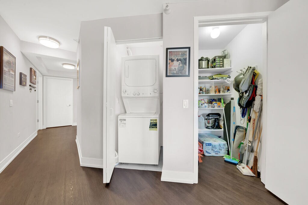 This beautifully updated 1-bedroom, 1-bath condo offers 820 sq. ft. of stylish living space. Enjoy a renovated kitchen and bathroom, in-unit front-load washer and dryer, private balcony with city views, and ample closet space throughout. The building features top-notch amenities, including a fitness center, sauna, outdoor running track, pool, grilling stations, and dog run—everything you need for an active and social lifestyle. Perfectly located in the heart of River North, you’re just steps from grocery stores, trendy restaurants, and nightlife. Photos are of a model unit. Finishes may vary.