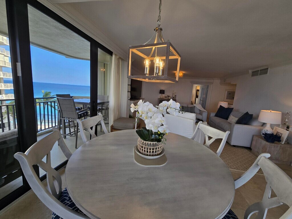 Oceanfront Elegance with Panoramic Views - 5460 N Ocean Drive, Singer Island, FLStep into coastal sophistication with this beautifully appointed, fully furnished 2-bedroom, 2-bathroom oceanfront condo offering breathtaking ocean and Intracoastal views from every room. Perched high above the pristine shores of Singer Island, this residence invites you to indulge in the ultimate beachfront lifestyle.The expansive wraparound balcony provides the perfect vantage point to enjoy sweeping sunrises over the Atlantic and unforgettable sunsets over the Intracoastal Waterway. A private balcony off the primary suite adds an intimate touch, ideal for morning coffee or evening reflection.Inside, the light-filled living room is both spacious and inviting, featuring a large sitting area and