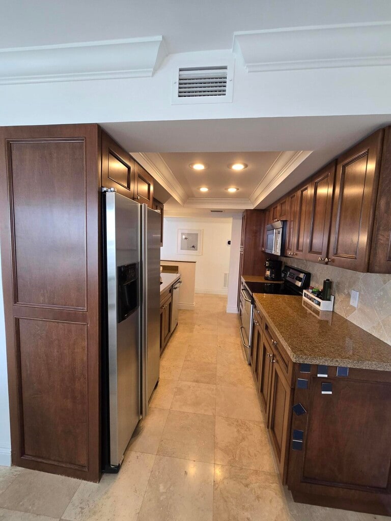 Beautifully updated condo with ocean and wide intra-coastal views! Light and bright living space with a spectacular kitchen featuring tons of updated cabinetry, a huge cooking island, granite counters & high-end stainless appliances. Separate dining areas off the kitchen & living room all open to covered balconies with expansive water views - perfect for entertaining and everyday seaside living! The spacious master suite includes its own private balcony and has a large walk-in custom closet while the master bathroom boasts dual vanities and a recently renovated marble shower. The 2nd bedroom suite also has an updated bathroom, closet and private balcony. Hurricane impact glass sliding doors, designer fixtures & window treatments. Great amenities and on private North end of Singer.