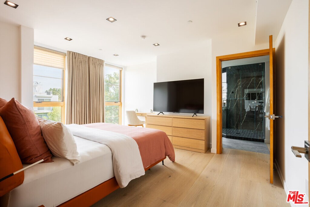Making its debut in one of West Hollywood/Beverly Grove's most coveted locations, 547 Sweetzer is a brand-new contemporary building bringing modern design, elevated amenities, and boutique-quality living to the neighborhood. This spacious 2 bedroom, 2.5 bathroom residence showcases polished concrete floors, oversized windows with remote-control power shades, Nest-controlled central heat and air, and an open-concept layout with a sleek kitchen outfitted with brand-new appliances. Both bedrooms are private suites with spa-inspired bathrooms, complemented by a stylish powder room and thoughtful storage throughout. Residents enjoy an expansive rooftop sundeck with sweeping city views, a 24-hour camera security system, and a gated subterranean garage with two side-by-side parking spaces plus a private storage unit. Available furnished or unfurnished, this home blends modern luxury with everyday convenience-just steps from Melrose Place, West 3rd Street, and Beverly Boulevard's premier dining, cafes, and boutiques. MLS ID 25630367