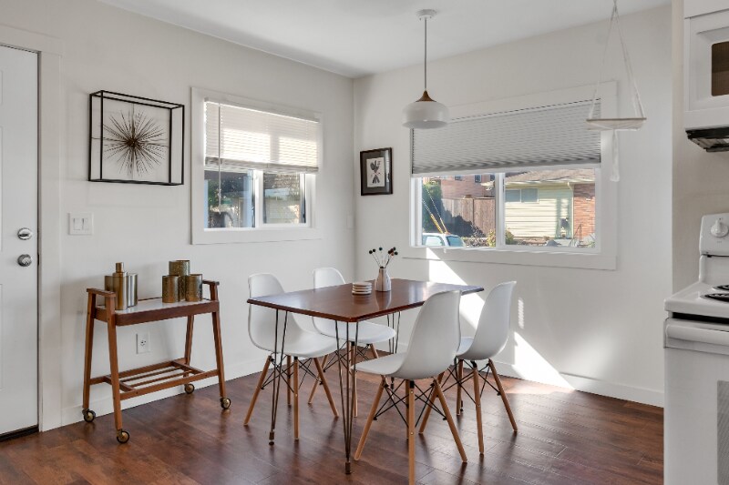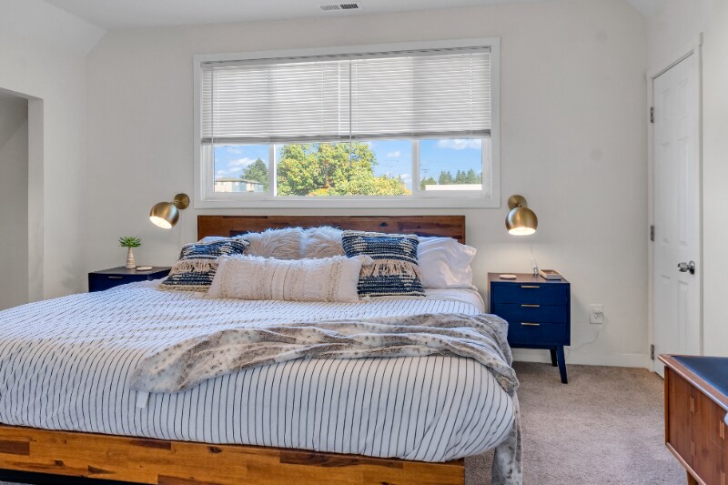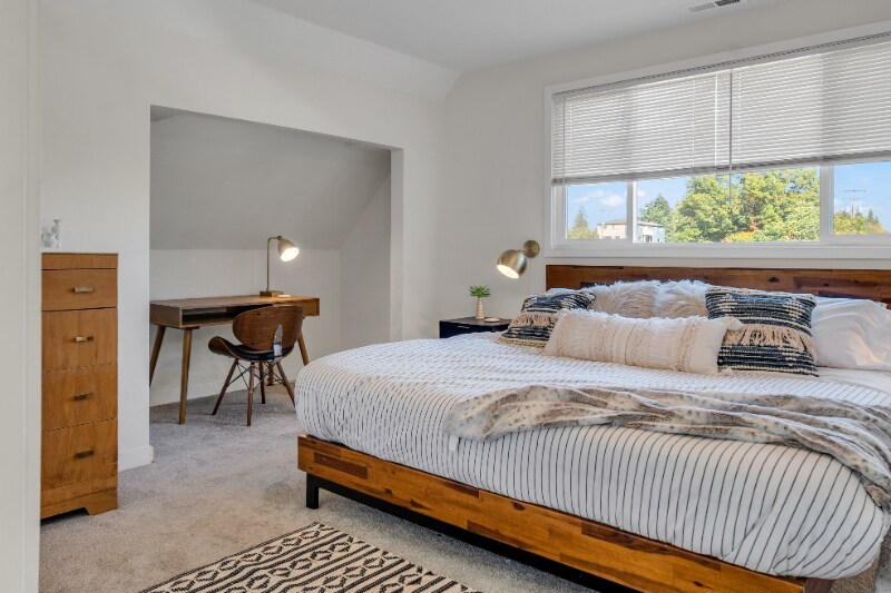 Property Id: 500409 This spacious, 3 bed, 2 bath North Tabor duplex is full of charm with a two-level interior, hardwood floors, and tall ceilings for a light and airy feel. Fully furnished with a boho mid-century vibe and all the comforts of home. The bright kitchen boasts granite countertops, abundant counter space, a dishwasher, and great natural light from the big window above the sink. The floor plan features one bed and one bath on the first level, with two additional bedrooms and a bathroom upstairs. Also upstairs, a modern barn door slides open to reveal a unique bonus room for working from home, and there’s an extra storage area too. This pet-friendly NE Portland duplex also has a large, fenced front yard and an in-unit washer/dryer. Other convenient perks include a smart Nest thermostat and Ring video doorbell. Note: This property has a second apartment in the basement with its own entrance.