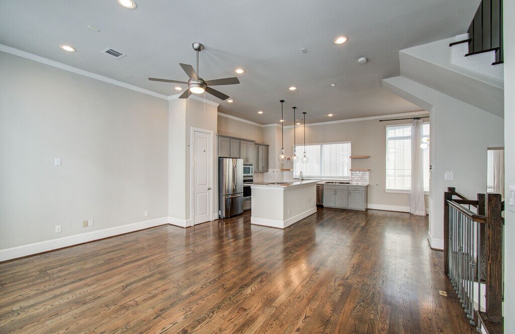 Welcome home to this beautiful 3-story house in the heart of Cottage Grove! It offers 3 bedrooms and 3.5 baths, with a bright, open layout and stylish finishes throughout. On the first floor, you’ll find a spacious bedroom with its own full bath and access to a small outdoor area — perfect for guests, a home office, or a workout space. The main living area upstairs features hardwood floors, tall ceilings, and big windows that let in tons of natural light. The kitchen comes with stainless steel appliances, a large island, and plenty of cabinet space. Upstairs, the primary suite feels warm and inviting with wood floors, a large closet, and a private bath. Another bedroom with its own bath is also on this level — great for a roommate, office, or nursery. Enjoy being just minutes from Memorial Park, the Galleria, downtown, and the Heights, with a neighborhood park right around the corner.