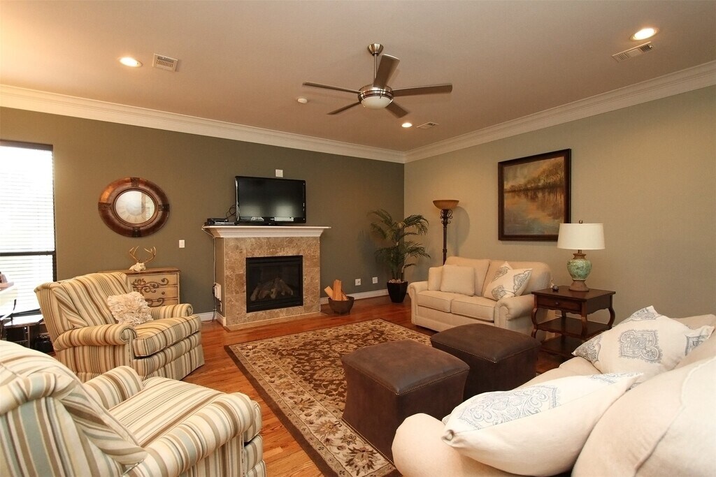 This exquisite home in Cottage Grove blends modern sophistication with comfort & style,offering an elegant living environment. Enter the stunning,updated kitchen featuring roll-out cabinetry,a swing-away corner cabinet system,backlit China storage,& dedicated appliance storage. The custom panel front refrigerator & porcelain farmhouse sink enhance the Jenn-Air appliances & Zephyr vent hood. Sophisticated touches include counter lighting,soft-close cabinets,& brass hardware. The spacious living room invites relaxation with a marble fireplace within custom cabinetry,bathed in natural light from a bow window. A surround sound system enriches entertainment. Each bedroom has a private ensuite bathroom; the first-floor room is ideal for guests,home office or gym. Enjoy 3 balconies & an enclosed front patio. Recent upgrades: new HVAC system in 2024 & 3rd floor hardwood flooring in 2025. Located near Memorial Park & Buffalo Bayou Park,this home combines luxury with prime location. MLS# 35066951