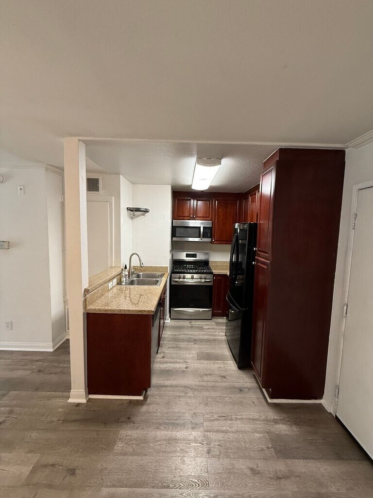Lovely,1/bedroom, 1/ bath condo for lease In the MET guard gated community This is an inside-facing unit in a good location, not on busy Canoga Ave. Features: bamboo floors throughout, granite counters, and stainless-steel appliances. ( microwave, gas range, dishwasher, and refrigerator)The kitchen opens to the dining/living area, creating a lovely open floor plan. The bathroom remodel was just completed, and the property is freshly painted and is ready for occupancy. Recently painted balcony perfect for grilling and relaxing. The unit includes two car in garage parking that conveniently near by the entrance and elevators. Extensive amenities: 24-hour guard gated/secured entry, elevators, 4/pools, 4/ spas, 2/ saunas, 6/tennis courts, a racquetball court, basketball courts, and an amazing Fitness Center. Conveniently close to all shopping, the Village, Warner Center Park, Costco, fine dining restaurants, malls, movie theaters, Calabasas and 101/freeway. Rent is $2,150 Security deposit: $2,150 1/small pet will be accepted with a pet deposit. Call: Listing Agent: DRE # 01709588 LRS Realty and Mgmt.. Inc. DRE # 01820556 "We are an Equal Housing Provider and follow all Fair Housing Laws"