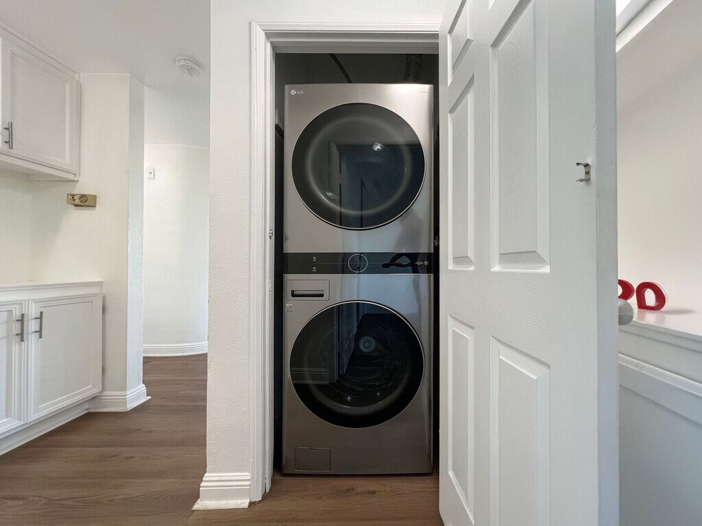 Welcome to this stunning 3 bedroom, 2 bathroom house located in Long Beach, CA. This freshly painted and cleaned home features vinyl flooring, blinds, and a wrap-around balcony perfect for enjoying the California sunshine. The kitchen is equipped with a dishwasher, stainless steel fridge, stove, and microwave, as well as plenty of cabinet space. Other amenities include a washer & dryer, ceiling fan, and an electric fireplace for cozy nights in. The gated property offers 2 carport parking spots and an elevator in the building for convenience. Residents can also enjoy the community pool and jacuzzi. Located near the 710 freeway and less than 5 miles from the beach, this upstairs unit is the perfect place to call home. Deposit varies upon approved fico.