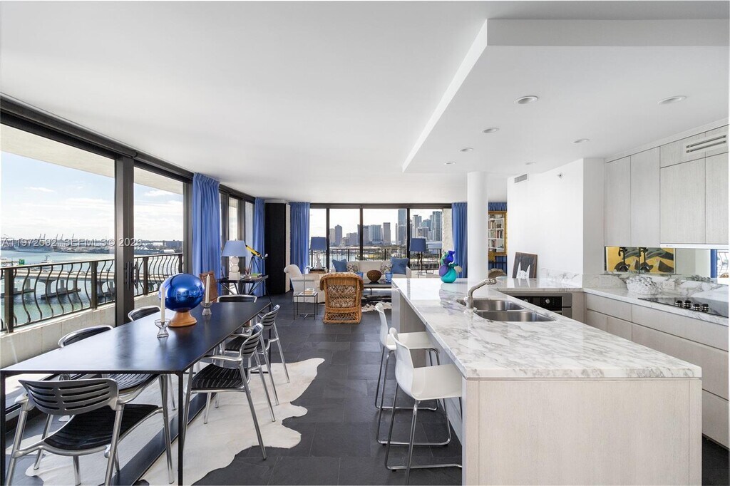 Stunning, fully renovated A-line corner skyloft with spectacular 270° views of Biscayne Bay, Miami Beach, the Port, and the skyline. This sleek 1280* sq ft 1BR/2BA residence features floor-to-ceiling impact glass, a sweeping wraparound balcony, and an open, modern layout that feels bright, private, and effortlessly luxurious. Custom chef’s kitchen with marble counters, breakfast bar, and luxe cabinetry. Contemporary bathrooms with bold finishes and spa-like showers. Convertible bedroom, built-in closets, washer/dryer, and high-end designer touches throughout—truly move-in ready. Located in Miami’s vibrant Arts & Entertainment District, steps from world-class dining, the Arsht Center, museums, concerts, Bayfront Park, and the free Metromover. Brightline nearby connects you to Brickell, Aventura, Boca, and West Palm. The Venetia has completed its 40-Year Recertification, with lobby and amenity upgrades underway for 2026. Assigned parking, valet, and an on-site marina offering expanded capacity for larger vessels. A rare, unobstructed-view corner home in a recertified waterfront building—ideal as a primary residence, pied-à -terre, owner prefers an 18 month lease MLS # A11972592