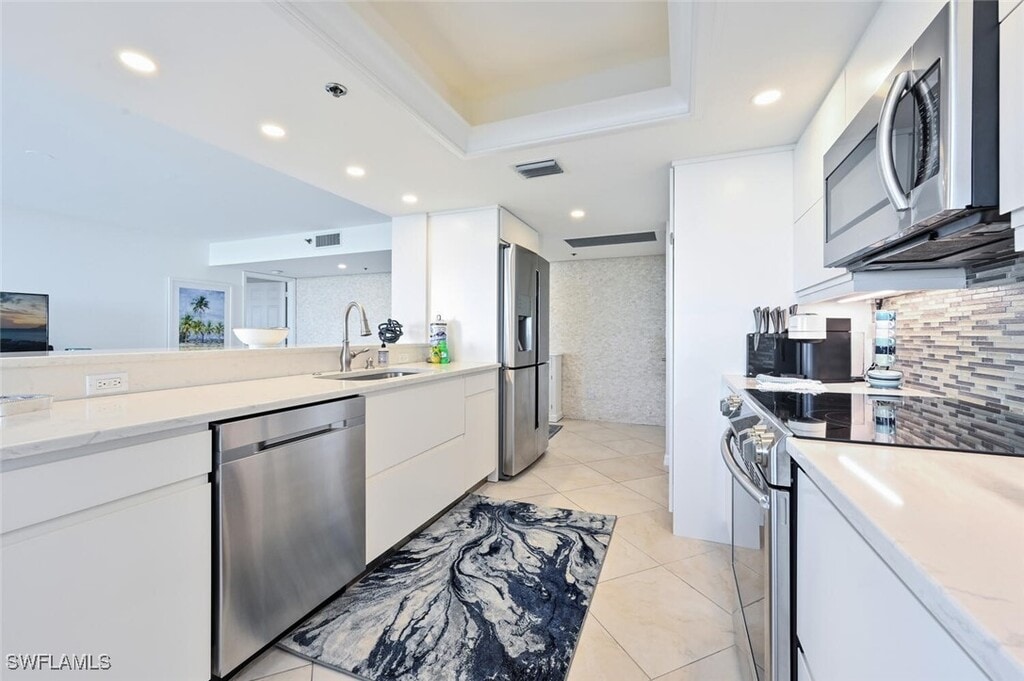 Enjoy breathtaking Gulf views from this 19th floor end unit,with 2BR/2BA,in St. Nicole at Pelican Bay. Beautifully renovated,the open floorplan was created to maximize the million-dollar views. New linens,kitchen inventory,TVs and décor make this property the cream of the crop. Natural light fills the living area and complements the clean,contemporary lines. The primary suite features a King bed,ceiling fan,flat-screen TV,custom closets,dual sinks and a walk-in shower. The guest bedroom faces east with expansive views of Pelican Bay and offers a Queen bed. There is plenty of outdoor space to enjoy sunsets and dining under the stars. St. Nicole amenities include a heated pool/spa,exercise room,social room and secured lobby with day-time attendant. Catch the tram directly behind St. Nicole for a ride down to the private beach where chairs and umbrellas are waiting. Other Pelican Bay amenities include private beachfront restaurants,Fitness Center,Har Tru Tennis Courts,community center and miles of scenic paved paths. Only minutes away from shopping and dining at the Waterside Shops and Mercato,and entertainment at the Artis-Naples Philharmonic. Live exceptionally in Pelican Bay!