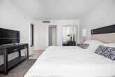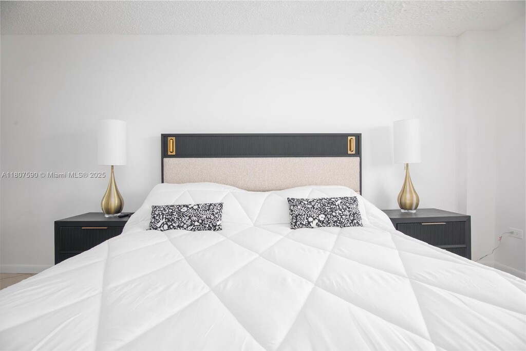 Live steps from the sand in this beautifully remodeled oceanfront studio, now smartly converted into a one-bedroom unit. Enjoy the best of both worlds with breathtaking views of the Atlantic Ocean and Biscayne Bay from your windows. This bright and airy residence features an open-concept living space with stylish finishes throughout. The modern kitchen is equipped with updated cabinetry, sleek countertops, and stainless steel appliances. The bedroom area offers privacy and comfort, separated by custom partitions to create a true one-bedroom feel. Partially furnished for your convenience, this home is move-in ready and ideal for anyone seeking luxury coastal living. Located in a well-maintained building with direct beach access and resort-style amenities.