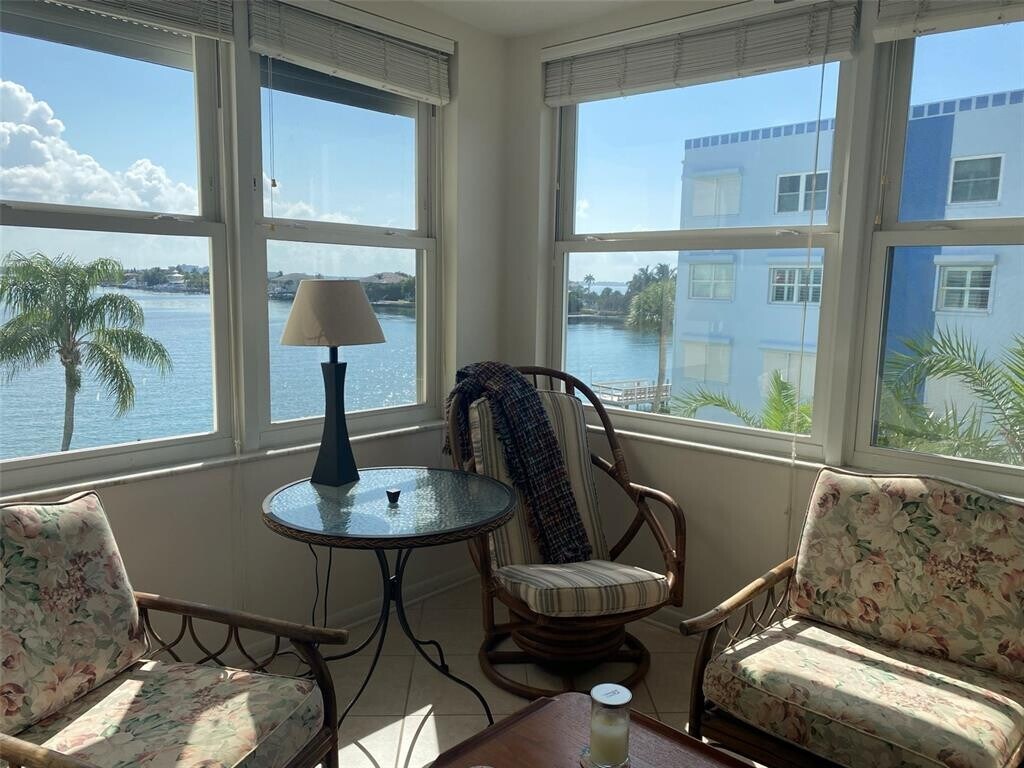 Welcome to Regency West. Sensational water views of Boca Ciega Bay in the heart of St Pete Beach! You can watch dolphins,manatees,boats,paddleboarders and plenty of pelicans right from this beautifully furnished condo. The unit offers 1 bedroom with a queen size bed and a new murphy bed in the versatile vestibule / bonus area (overlooking the water) that converts to a private sleeping space for your guests. The white sands are just steps across Gulf Blvd to the beach - enjoy your snowbird season with 2 pool options along with recreational activities. Very convenient to walk to all the nearby shops,restaurants,markets and events. Laundry is directly outside the unit door and there is great storage for all the beach chairs. NO PETS and NO SMOKING MLS# TB8439414