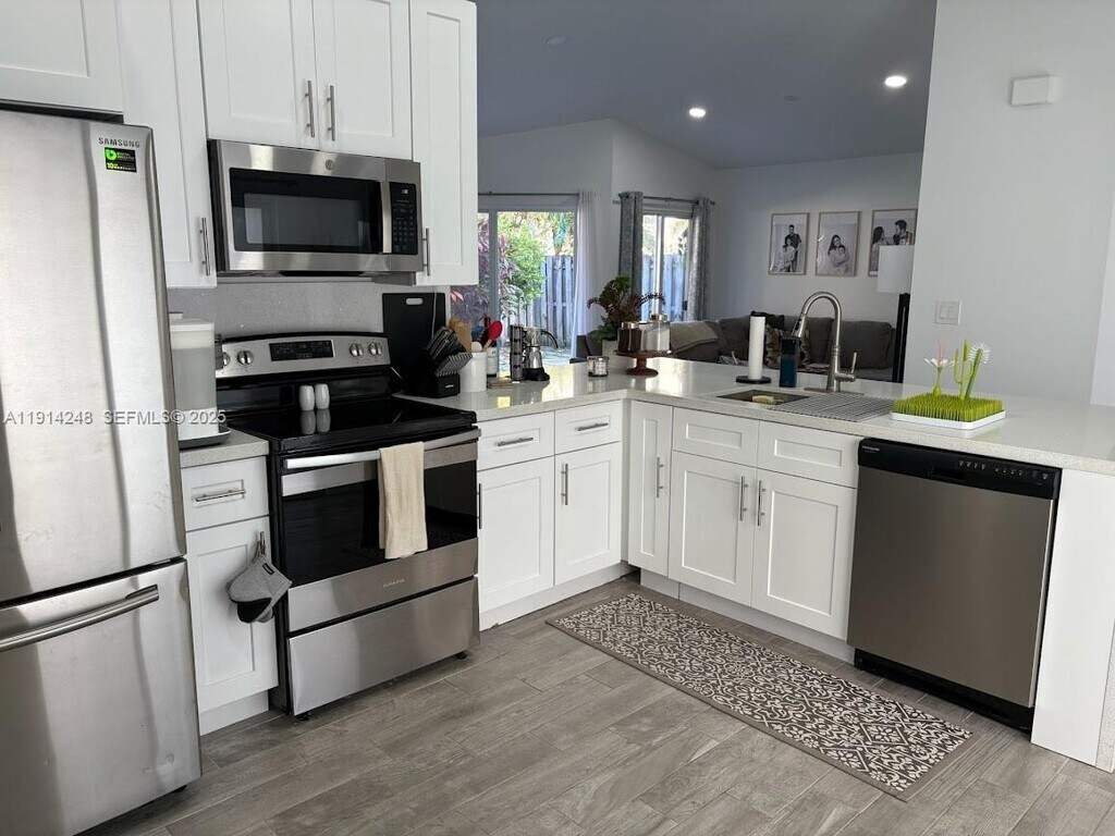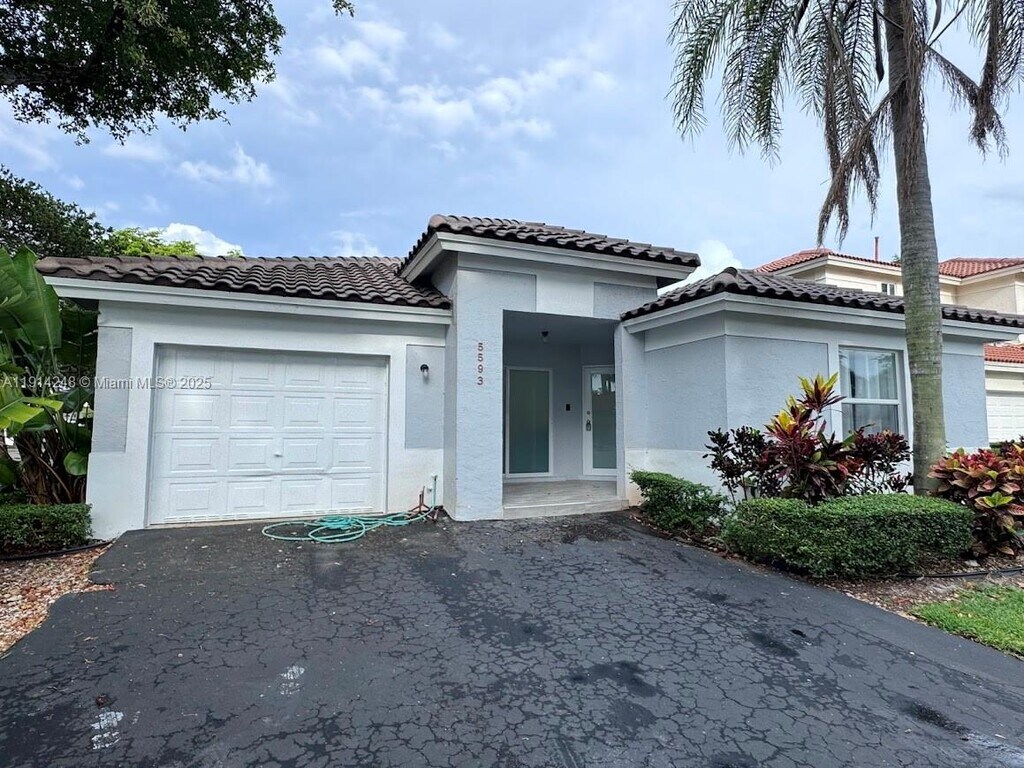 Beautiful remodeled one story Single Family Home in a gated community of Doral Palms. This gorgeous home is located in a corner providing privacy, has 2 bedrooms and 2 full baths and the garage is converted into a 3rd room or family space. Fresh painted, impact windows, new roof, blackout Shades and nice big fenced patio. Access to the beautiful Doral Country Club with pool, gym, tennis courts, basketball courts, pickleball courts, restaurant, golf course, activities for the family and more.
