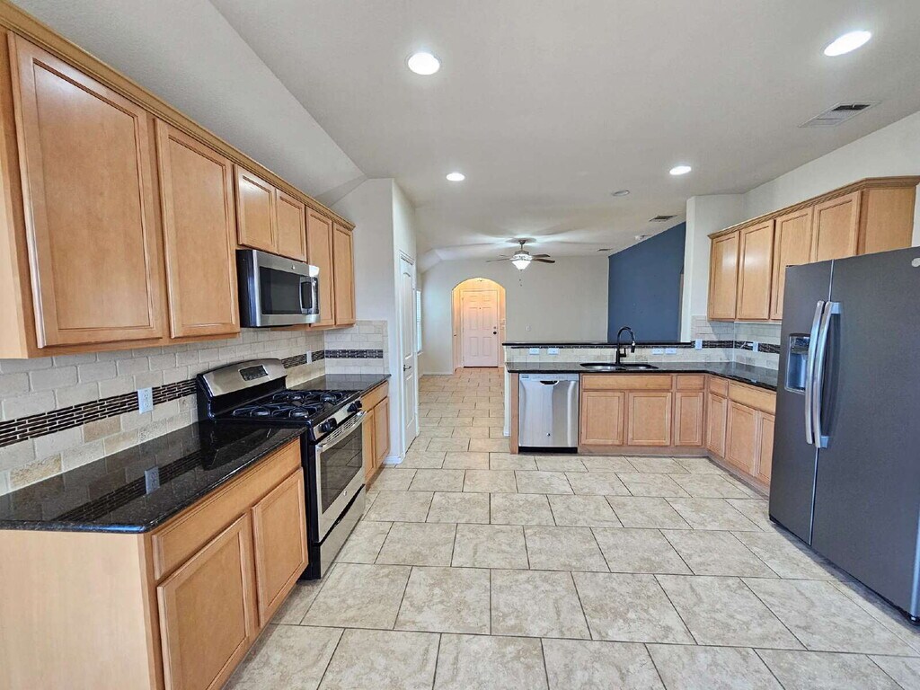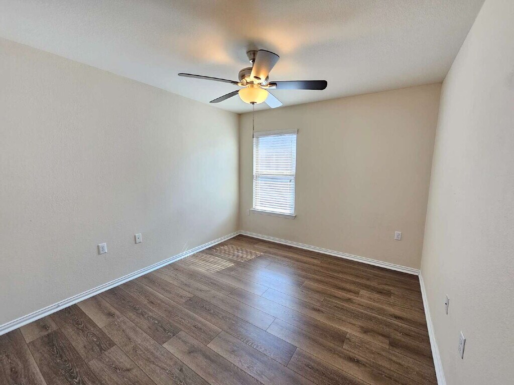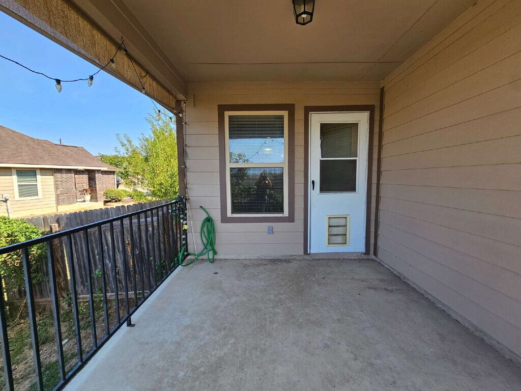 Welcome home to this beautiful 3-bedroom, 2-bath residence offering comfort, style, and convenience in a serene setting. The open floorplan is highlighted by elegant crown molding and durable vinyl wood planking throughout—no carpet with hard tile in all wet areas! The kitchen features granite countertops and comes fully equipped with a refrigerator. The spacious primary suite includes a luxurious bath with a garden tub, separate stand-up shower, and plenty of storage. Outside, enjoy your evenings on the covered patio overlooking stunning sunset views. A long driveway provides ample parking, and the thoughtfully designed layout makes this home both functional and inviting. Comes with a washer and dryer for convenience and ease. Don't forget to check out the covered back patio to watch the gorgeous sunsets in the evenings. Home has fully functioning solar panels to help reduce the cost of electricity. **2 weeks free rent and a $50 HEB gift card**