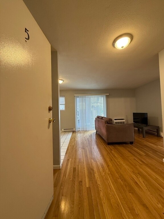 Don't miss this sun-drenched,move-in ready one-bedroom gem available now! This space provides an open living/dining layout,a full kitchen stocked with generous cabinet and counter space and warm hardwood floors. The spacious bedroom features double closets and pours in natural light,while the linen closet in the hall keeps everything organized. Enjoy in unit ac and a shared outdoor balcony plus a deed off street parking space included in the rent. MLS# 73486124