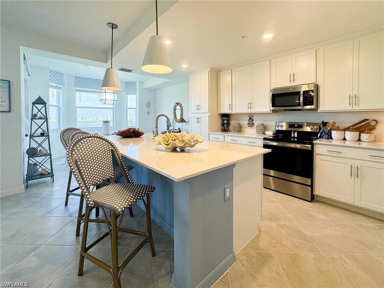 Welcome to resort-style living in this beautifully furnished 2-bedroom, 2-bath Birkdale condo located in The National Golf & Country Club at Ave Maria. This first-floor residence offers stunning views, an open-concept layout, and the comfort of modern furnishings, available for both short-term or long-term lease. Golf membership is included, allowing you to enjoy access to the professionally designed 18-hole championship course. Inside, the home features a bright, spacious living area with high ceilings, stylish d cor, and a well-equipped kitchen with stainless steel appliances and a large center island. The split-bedroom floor plan provides added privacy, with each bedroom having access to a full bathroom. Step out onto the screened-in lanai to unwind with beautiful views of the golf course and Florida sunsets. This unit includes an in-home washer and dryer, covered parking, and elevator access. Whether you're here for the season or seeking a year-round retreat, this home offers a hassle-free, turnkey lifestyle. As a resident of The National, you'll have access to world-class amenities including a championship golf course, resort-style zero-entry pool with lap lanes, three satellite pools, a poolside bar and grill, a full fitness center with 24-hour access, a relaxing day spa, and courts for tennis, pickleball, and bocce ball. The clubhouse features fine dining and a variety of social activities to enhance your living experience. Located within the master-planned community of Ave Maria, you ll also enjoy nearby parks, walking trails, restaurants, shops, and a vibrant town center full of entertainment and events. Don't miss the opportunity to live in one of Southwest Florida s most desirable golf communities. Schedule your private showing today and embrace the ultimate Florida lifestyle.