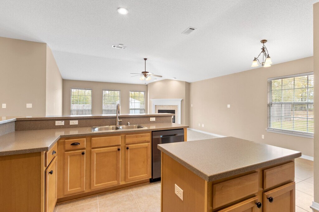Welcome to this spacious 4-bedroom, 2.5-bath home with 2-car garage, located in the desirable Tanglewood subdivision near Tanglewood Golf Course. Enter through the elegant double archways leading to the great room with vaulted ceiling, corner fireplace, and views of the private backyard. The large, open kitchen is the heart of this home, featuring Corian countertops, a center island, breakfast bar, walk-in pantry, and stainless steel appliances including a refrigerator, flat top range/oven, built-in microwave, and dishwasher. The primary suite offers a tray ceiling with ceiling fan, and an ensuite bath with dual vanities, garden tub, glass-door shower, and a 15-foot walk-in closet with abundant shelving. Two additional bedrooms share a Jack-and-Jill bath, while the fourth bedroom makes a perfect office or study. Additionally, enjoy the large, fully-fenced backyard with covered patio, extended paved area, and storage unit, as well as a dedicated laundry room with full-size washer and dryer provided.