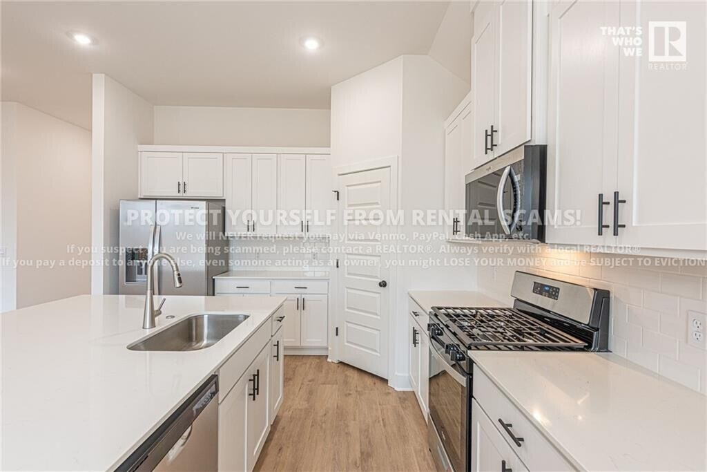 AVAILABLE NOW! Come explore this stunning NEW CONSTRUCTION 4-bed, 2-bath home ideally located near parks, local eateries, and just a short drive to the University of Arkansas. This home offers LVP flooring throughout, a fully fenced backyard, and convenient Smart Home options (at tenant expense). Head inside to the open-concept living room and kitchen, highlighted by a cozy electric fireplace, white quartz countertops, a kitchen island, generous cabinetry, pantry, and stainless steel appliances. Check out the primary bedroom featuring a private ensuite with a double-sink vanity, a beautifully designed walk-in shower, and a large walk-in closet. Enjoy outdoor living in the spacious, fenced backyard complete with a covered patio—perfect for relaxing or entertaining. Don’t miss your chance to see this beautiful home! BONUS: All appliances included & lawn care included! **Tenant is responsible for all utilities MLS# 1329113