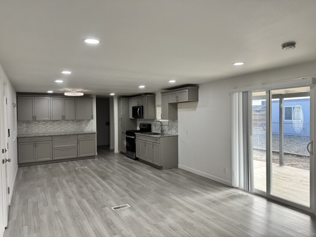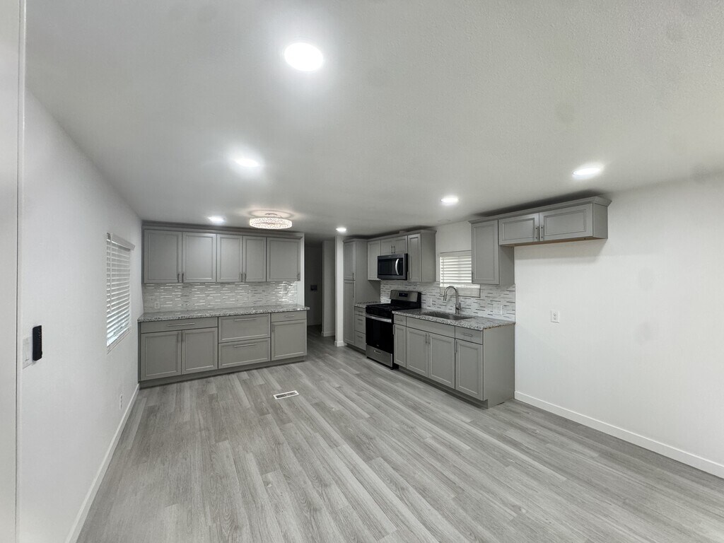 Welcome to this beautifully remodeled 3-bedroom, 2-bathroom home offering modern finishes and exceptional parking options. Inside, you'll find a fresh, open feel with updated flooring, contemporary lighting, and a fully renovated kitchen featuring sleek cabinetry, updated countertops, and stainless steel appliances. Both bathrooms have been tastefully remodeled with clean, modern finishes. The home offers comfortable bedroom sizes and a functional layout ideal for everyday living. Outside, enjoy a fully fenced yard with double gates and carports on both sides of the home, providing ample space for multiple vehicles, toys, or trailers. A 1-car garage adds additional storage and convenience. This move-in-ready home combines style, functionality, and versatility—perfect for tenants seeking space, privacy, and modern updates.