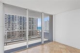Enjoy the good life with stunning ocean views in this remodeled 2-bed/2-bath unit across the street from the beach! Stylishly furnished, the split-plan unit features ample closets, a large master bedroom, beautiful floors and an oversize balcony. Fitted w/ a foldout sofa, the second bedroom opens to living space with sliding panel doors that can be left open during the day to use as a den or can be closed at night to use as a bedroom. Updated kitchen includes new DW, micro, range, and oven. Well-maintained building w/gym, pool, business center, community/yoga room. New hurricane windows in living space. Laundry and extra storage on same floor. Building manager on premises. Rent furnished for one year with option to renew. 24-hour security.
