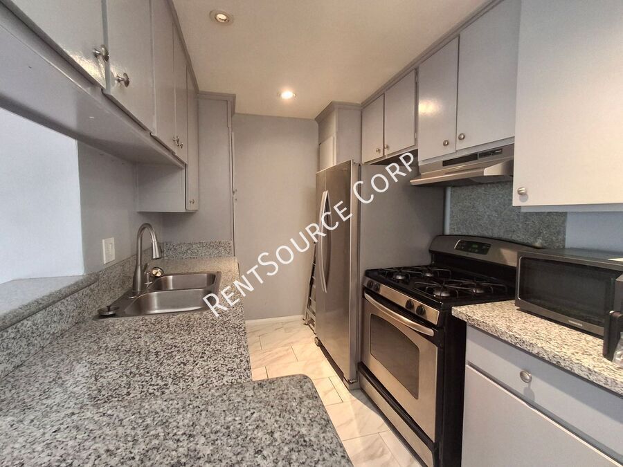 Don't miss out on this incredible deal for a beautiful newly updated apartment. This is a spacious upper level 3 bedroom / 2 bath apartment centrally located in Tarzana (no one lives above this unit!). Recently renovated with laminate wood and stone flooring throughout. In addition, this beautiful apartment gets lots of light, has high ceilings, spacious bedrooms, a large balcony, and great storage space. The kitchen has granite counter tops and top of the line appliances, including a built-in microwave and large refrigerator. The complex offers a well-maintained outdoor space with a large pool, Jacuzzi, laundry facilities, recreational center and two gated parking spaces. Conveniently located near the 101 freeway, and minutes away from shopping centers, markets, restaurants, and entertainment. No smoking and no pets allowed. Owner pays for water and trash. Tenant to pay all other utilities.