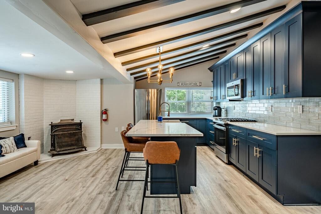 Spacious and beautifully updated, this fully furnished four-bedroom, two-bathroom off-season rental at 5708 Park Blvd in Wildwood, NJ is the largest unit in the triplex and serves as the owner’s suite. Designed for comfort and style, this home features an open-concept layout with a bright and airy living area, modern finishes, and coastal-inspired décor throughout. The renovated kitchen offers sleek navy cabinetry, stainless steel appliances, and a large island with seating—perfect for cooking or entertaining. The home includes two beautifully remodeled bathrooms, comfortable bedrooms with ample storage, and a convenient in-unit washer and dryer. Enjoy the best of both worlds with easy access to the beach and boardwalk just a few blocks away, while being close to local shops, restaurants, and attractions. Utilities and Wi-Fi are included, with electricity recharged monthly based on usage. This off-season rental is available through April and is ideal for extended stays, transitional housing, or remote work by the sea. Pets are considered on a case-by-case basis.