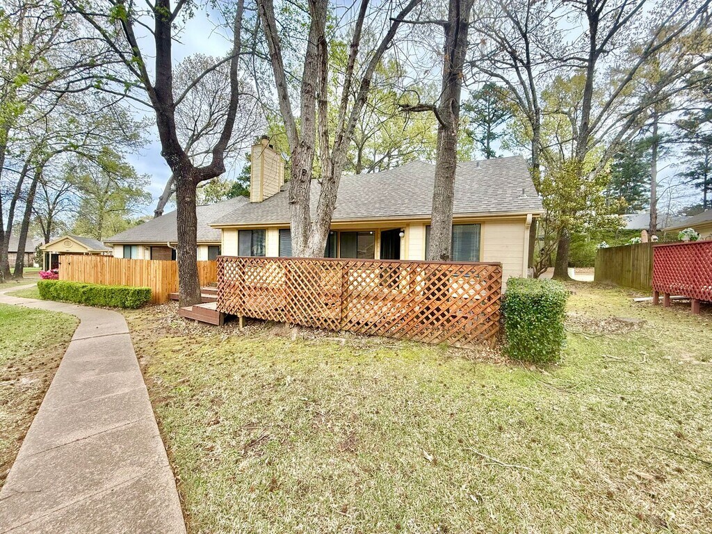 Discover the perfect blend of airy elegance and cozy charm in this stunning 2-bedroom, 2-bathroom retreat. Situated just off Eagles Nest Blvd, this home offers a peaceful escape without sacrificing convenience. Residents will enjoy a lifestyle of ease and leisure, with full access to a sparkling community pool. Step inside to an expansive living area defined by soaring vaulted ceilings and an abundance of natural light. The centerpiece of the room is a charming faux fireplace, perfect for anchoring your décor and creating a warm, inviting atmosphere for relaxing or entertaining. The functional kitchen comes equipped with a reliable oven/range and dishwasher, making meal prep and cleanup effortless. The primary suite serves as a true sanctuary, boasting a walk-in closet and a private ensuite bathroom with a tub/shower combo and generous counter space. Both bedrooms are impressively sized and feature expansive windows that provide for plenty of natural light. You will appreciate the secondary hall bathroom, which features a brand-new, modern walk-in shower. When you are ready to unwind, step through the sliding glass doors onto your private outdoor patio. Surrounded by mature trees, it is the ideal spot for your morning coffee or an evening breeze in a lush, shaded setting. This home offers the space you need and the serene atmosphere you’ve been looking for. This property is Whitehouse ISD! Pets are welcome with some breed restrictions, 2 pet max, no more than 40lbs. One time pet fee/deposit per pet, no monthly pet rent. Amount depends on weight. Available 3/20 with option to hold for 2 weeks with deposit. Reach out to schedule your private tour today!