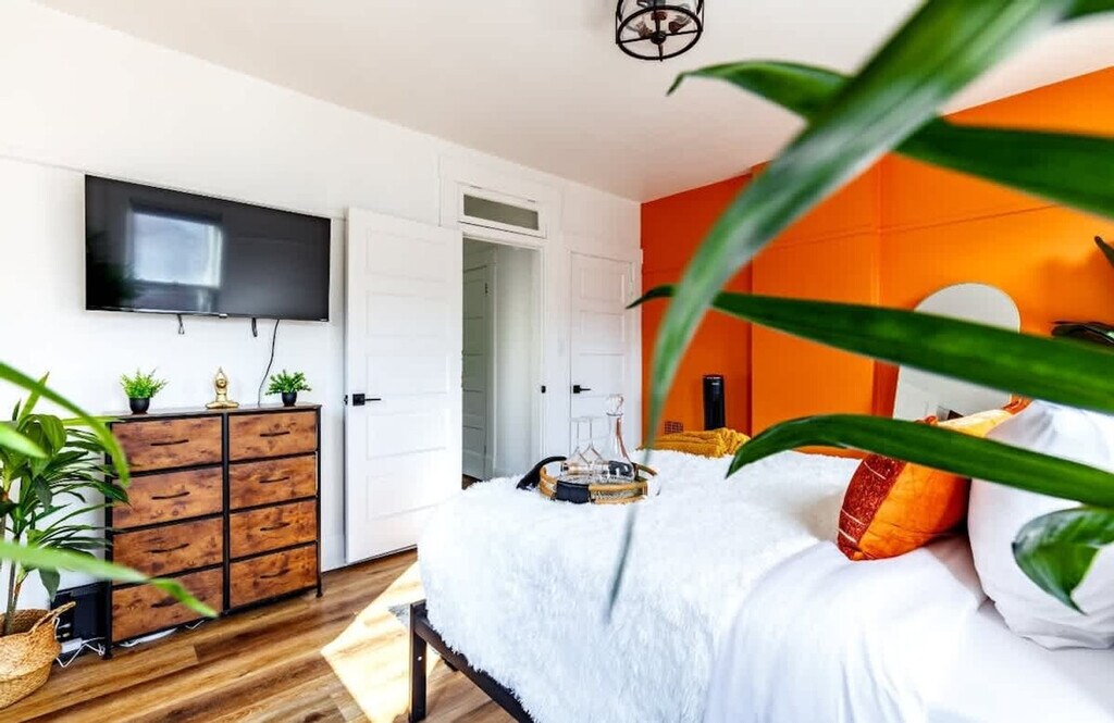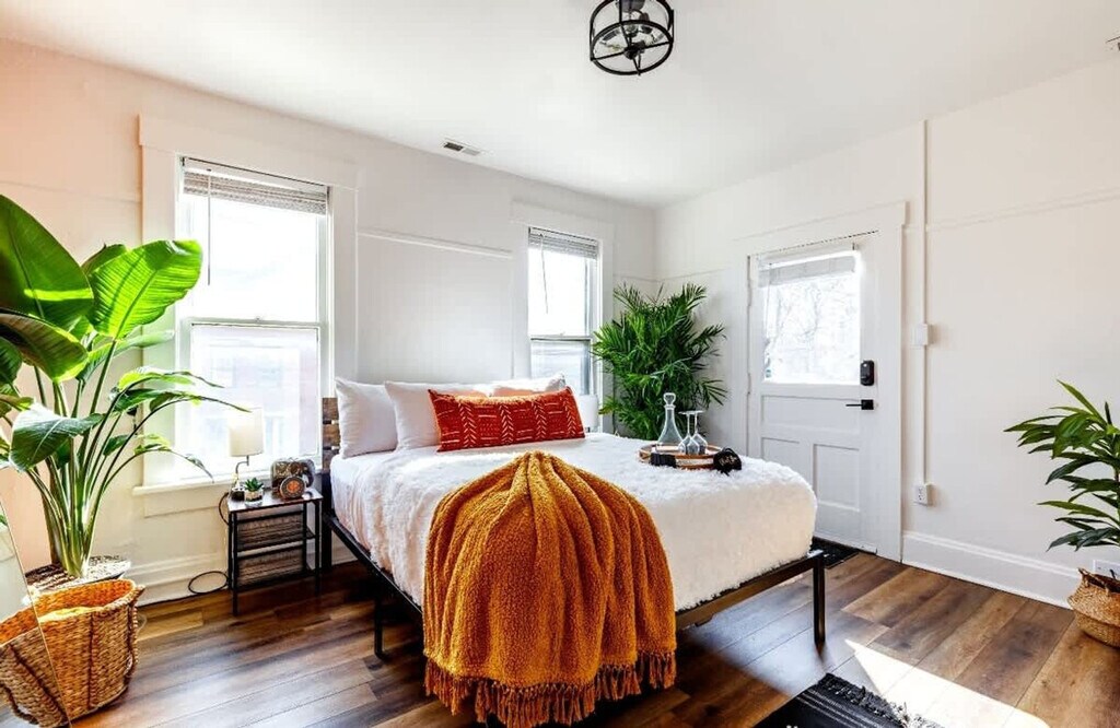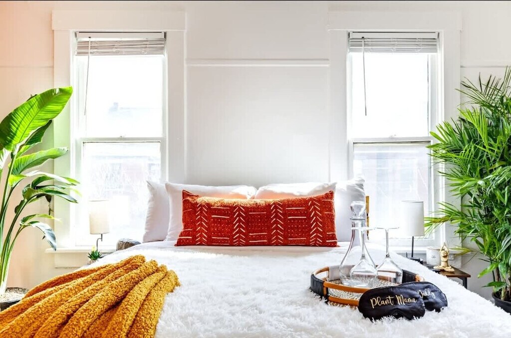 Feel at home in this 2-bedroom apartment in Columbus, located on the second floor, accessible by a flight of stairs at the back of the home. This "one-up, one-down" duplex offers a comfortable stay with original hardwood floors. This apartment is filled with gorgeous rare plants and upscale decor. It features a fully equipped kitchen, high-speed internet, a 55-inch smart TV in the living room, smart TVs in all bedrooms, tower fans, white noise machines, a hair dryer, and a handheld steamer. Complimentary toiletries are provided in the bathroom. Street permit parking is available for one vehicle. Additional street parking permits are available for $10 per additional vehicle for the entire stay. Early check-in and late check-out options are available for an additional fee: 1-hour early check-in at 3 PM for $25, 2-hour early check-in at 2 PM for $50, 1-hour late check-out at 11 AM for $25, and 2-hour late check-out at 12 PM for $50. Pets are welcome for a fee of $40 per pet per night, up to a $600 cap per pet for the entire stay. The location is perfect for exploring Columbus. Many great restaurants and bars are right on North High Street. The apartment is a short drive from the Short North District, Scioto Audubon Metro Park, downtown Columbus, the Greater Columbus Convention Center, and Nationwide Arena Stadium. The Book Loft of German Village is a short walk away, and Ohio State University campus, Nationwide Children's Hospital, and CMH Columbus John Glenn Airport are within a short drive. Some city or neighbor noise is possible due to the central downtown location and shared wall with the neighboring unit. White noise machines and fans are provided in every room. Quiet hours are from 9 p.m. to 7 a.m. Breaking any house rule will result in a charge of $500 each. Absolutely no plants in the home are to be moved for any reason. No loud music is allowed at any time. No parties, small gatherings, or events are allowed. No smoking, marijuana, firearms, or illegal substances are allowed on the property. No additional unregistered guests are allowed. For any undisclosed pet, a $500 charge will apply. No photography or any commercial use is allowed on the premises without written permission from the host. Furniture is not to be rearranged. Tampering with exterior surveillance, noise monitors, and smoke sensors will lead to immediate cancellation with no refund, as well as a $500 violation charge. Any late check-out will result in an additional charge of $300. A dedicated workspace is available. Registration Number: 20234440 [SI]