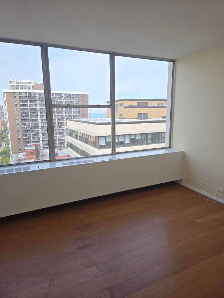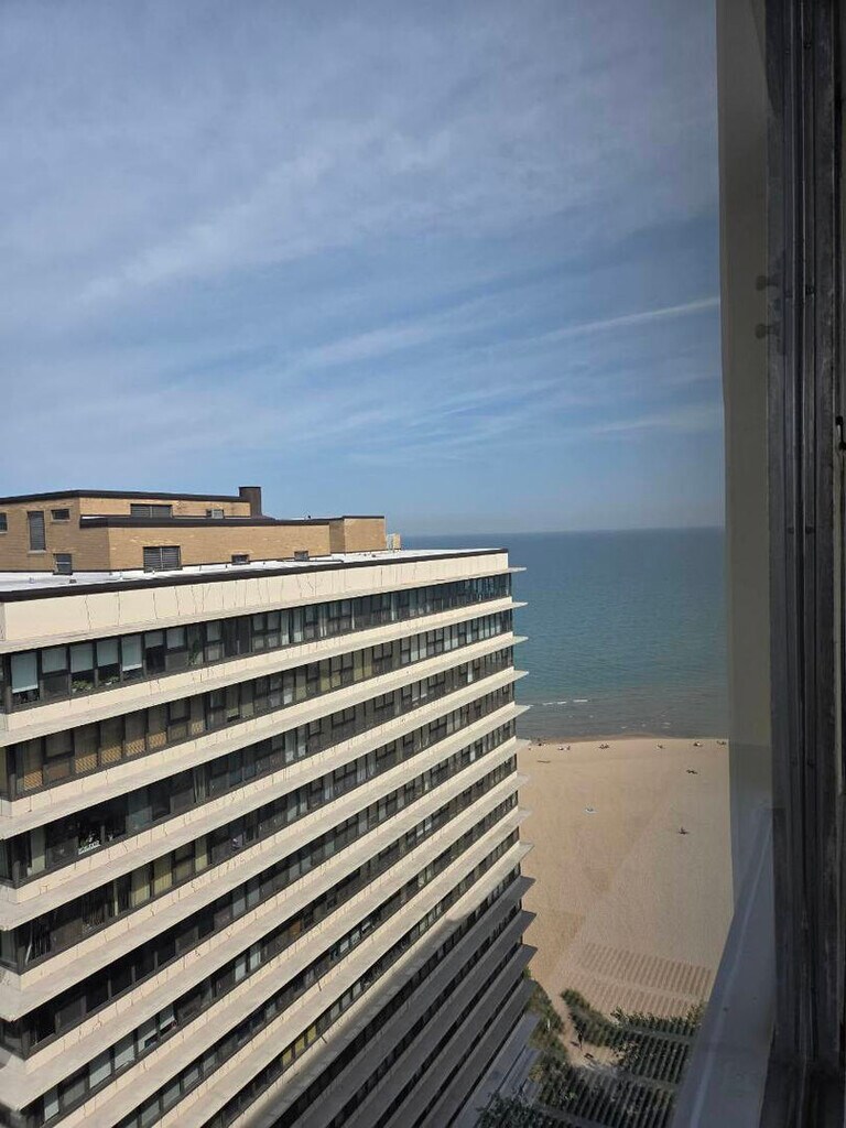 Beautiful lake view outside your window. Step out directly onto the beach from the building patio. Rent includes gas, heat, cable, internet, and water. Building has doorman, party room, rooftop deck, solarium, gated beachfront patio with BBQ grills. In-building laundry. Rent is $1,750. Security deposit is $1,750. Need both to move in. Electric is not included. Bus #147, 151, 136 just outside the building. Walk to #36 and red line train station 5 minutes away. The generously sized bedroom can accommodate a king-sized bed. Beach Living At Its Best!