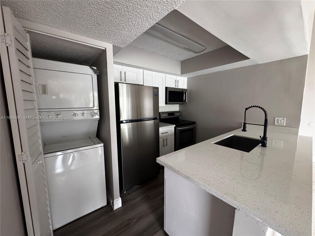 Beautiful apartment at Sun Vista Gardens private Condominium. Closed gated community. Security 24/7. Living room and Dining room. Tile floors. New paint. New updated kitchen with new kitchen cupboards and new counter. Laundry room with washer dryer in unit. Balcony with a view. Assigned parking. Guest parking. Pool area. Spa. Tennis courts. Gym. Club house, Water is included.