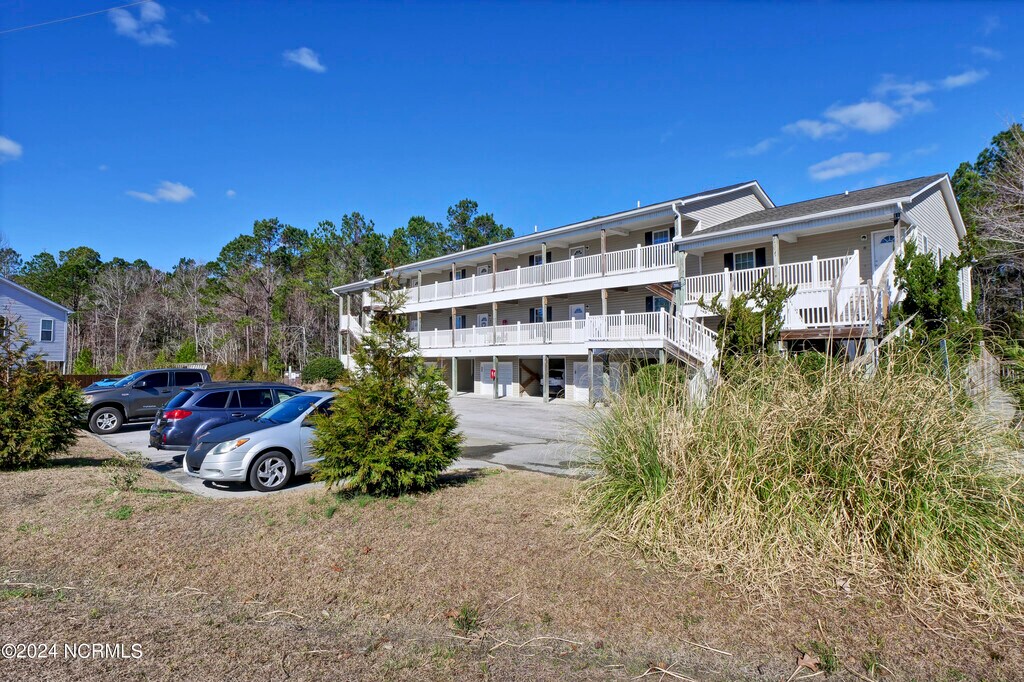 2nd Floor; End Unit 800+/-HSF older pictures. All New Paint and Appliances; directly across from the entrance to Stone Bay and MARSOC, just minutes from the Topsail Island Beach! Open floor plan. Two bedrooms each with full bath. Covered parking lot available. About 6 miles from North Topsail Beach; close to Dixon schools.W/D not included but negotiable;; Pets Negotiable; Parking negotiable.