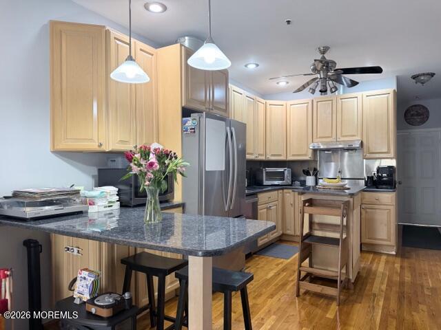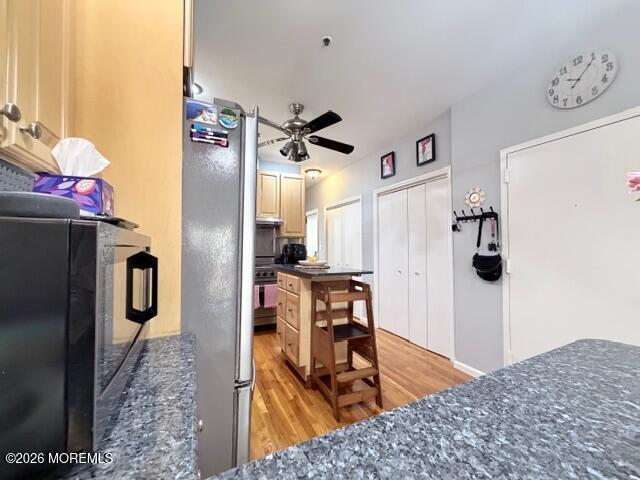 Welcome home to this beautifully renovated, light-filled brownstone-style condo in the heart of Hoboken. This space offers an ideal layout for both everyday living and entertaining. The updated open kitchen features granite countertops, stainless steel appliances, a Viking cooktop and stove, dishwasher, microwave, and a convenient breakfast bar that opens seamlessly into the living space. The spacious living room is highlighted by high ceilings, track lighting, and hardwood floors that run throughout. Step outside to your private oversized balcony, a rare and coveted feature, perfect for morning coffee or evening unwinding. Additional conveniences include an in-unit washer and dryer, generous closet space, and private basement storage. The spacious bathroom continues the home’s clean, well-maintained aesthetic. Located just off 1st Street, this prime Hoboken address offers an easy walk to the PATH train, parks, and the vibrant shops and restaurants that make the neighborhood so desirable. A perfect blend of charm, comfort, and convenience, don’t miss the opportunity to call this one home!