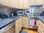 Welcome home to this beautifully renovated,light-filled brownstone-style condo in the heart of Hoboken. This space offers an ideal layout for both everyday living and entertaining. The updated open kitchen features granite countertops,stainless steel appliances,a Viking cooktop and stove,dishwasher,microwave,and a convenient breakfast bar that opens seamlessly into the living space. The spacious living room is highlighted by high ceilings,track lighting,and hardwood floors that run throughout. Step outside to your private oversized balcony,a rare and coveted feature,perfect for morning coffee or evening unwinding. Additional conveniences include an in-unit washer and dryer,generous closet space,and private basement storage. The spacious bathroom continues the home's clean,well