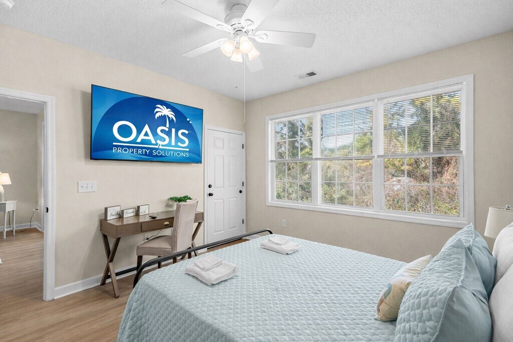 Bright & Relaxing Golf-View Condo in North Myrtle Beach – Sleeps 6! Welcome to your perfect coastal getaway at Oyster Catcher Drive, Unit 723—a beautifully updated 2-bedroom, 2-bath condo located in the sought-after Cypress Bend community of Barefoot Resort! Wake up to peaceful golf course views, enjoy resort amenities, and unwind just minutes from the white-sand beaches of North Myrtle Beach. Whether you’re here for a family vacation, a golf retreat, or a relaxing escape, this condo offers comfort, convenience, and a true “home away from home” feel. The Space: ? 2 Bedrooms | 2 Bathrooms | Sleeps 6 ? Bright, open-concept living area with comfortable seating ? Private balcony overlooking the lush Norman Course fairway ? Fully equipped kitchen with all cooking essentials ? In-unit washer & dryer ? High-speed Wi-Fi + Smart TVs Sleeping Arrangements Primary Bedroom: Queen bed, en-suite bathroom, flat-screen TV Guest Bedroom: Two twin beds Living Room: Queen sleeper sofa Resort Amenities Guests enjoy full access to Barefoot Resort’s amenities, including: • Cypress Bend community pool • Seasonal Barefoot Resort beach shuttle • World-class onsite golf courses • Scenic walking paths & ponds • Close proximity to Barefoot Landing’s dining, entertainment & shopping Location Highlights Just a short drive to: • North Myrtle Beach beaches (5–7 minutes) • Barefoot Landing shops, theaters & restaurants • Alabama Theatre & House of Blues • Publix, Kroger & local eateries • Mini-golf, water sports, marinas & family attractions Why You’ll Love Staying Here This condo combines resort living, coastal charm, and unbeatable convenience. Start your mornings with coffee on the balcony, spend the day at the beach or pool, and return to a peaceful, comfortable retreat at night.
