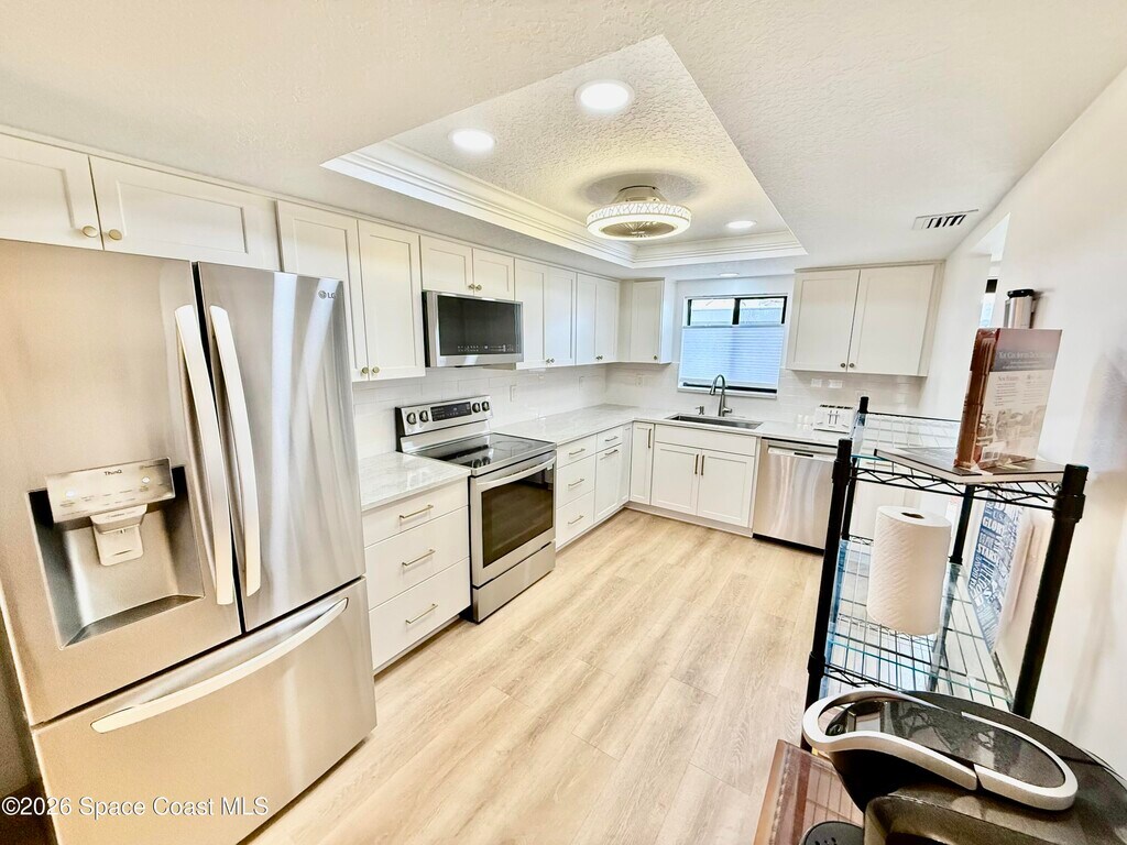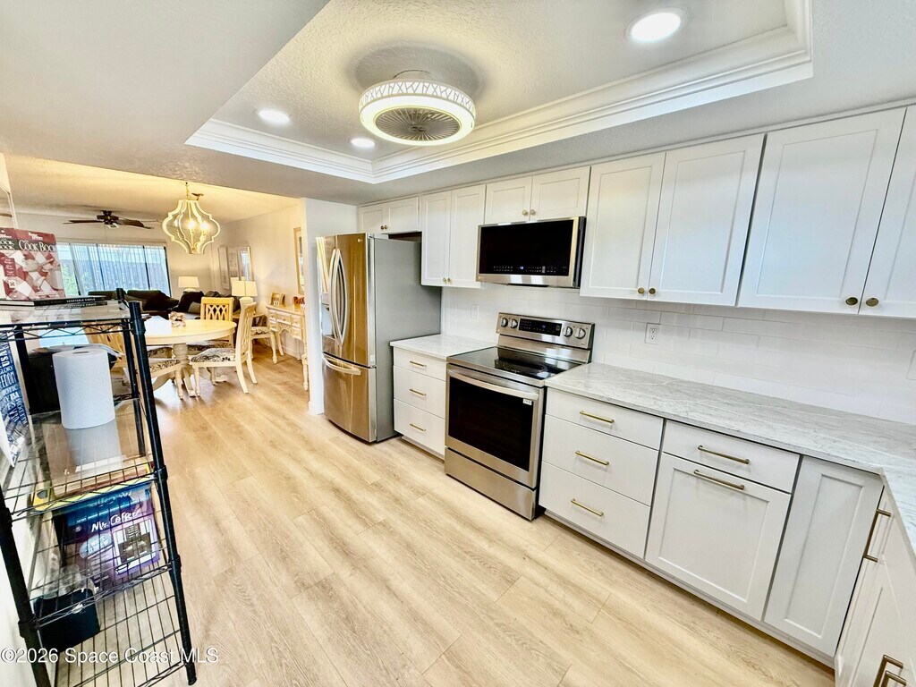 Remodeled 2 bedrooms/ 2 bathrooms 1st floor condo in Costa Del Sol Complex. Furnished and fully equipped kitchen with stainless steel appliance,open floor plan,new flooring throughout,modern decor & fixtures,private screened patio with storm shutters and outdoor seating,assigned 1 carport,and walk-in closet/ shower in master suite. Wonderful and quiet neighborhood. The complex offers in-ground fenced community pool,clubhouse,guest parking,river access with community pier,tennis courts,and car wash area. XLNT location near all thoroughfares with easy access to Port Canaveral,520,528,shopping centers,restaurants,amenities & entertainments,downtown Cocoa Beach,Patrick AFB,KSC,and just an hour to Orlando areas/ attractions. MLS # 1074527