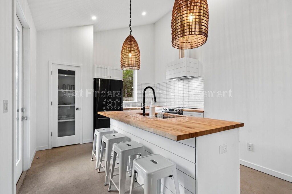 **AVAILABLE NOW** Unique opportunity to rent a home on an oversized lot. This multi-generational or roommate friendly home features two separate homes. The front home is a well designed studio with 1 bathroom and carport. The back home is a 2 bedroom, 1 bathroom home. Both homes are beautifully designed with modern finishes throughout. These homes feature polished concrete flooring throughout. Stunning kitchens with white cabinets, butcher block counters and stainless steel appliances. Beautifully appointed bathrooms with vanity and walk-in tiled showers. This property is truly one of a kind! Tenant is responsible for all utilities. Tenant is responsible for maintaining the lawn. Pets are welcome upon approval and with a pet fee. No co-signors or guarantors permitted. No roommates. We have a Strict NO Smoking or Vaping are permitted in or on the property. Nest Finders will not lease sight unseen. Applicant must view property in person in order to lease it. Screening includes credit/criminal background check, income verification of 3x the monthly rent and rental history verification. TENANT CHARGES: - Application Fee = $80 per adult - Lease Initiation Admin Fee = $150.00 after approval and upon signing - Resident Benefits Package (RBP) = $42.00 per month (not optional) - Security Deposit = 1-2 x the monthly Rent depending on property requirement and application score (fully refundable) - Pet fees as listed (if applicable) - 13 month lease term PETS (if accepted on a property): - $300-$500 Pet Fee per pet and additional pet rent per pet $30-$75/mo based on Pet screenings - Paw score. - Complete the pet application at - No resident or residents at any one premises shall at any one time own, harbor, or license more than TWO total animals in any combination - Up to TWO PETS Maximum on approved properties - The pet application fee is $20 for the first pet, $15 for each additional pet TO APPLY: - Go to our website click on this property, and fill out the application link. - $80.00 per adult non refundable Application Fee PER adult to be paid at the time of application. - Please Review application criteria and Deposit Info before applying - All applicants must complete the pet screening whether or not you have a pet. - We process all applications, and the first application that completes all the paperwork requirements and criteria will be processed first. Are you an Owner looking for a property management company? Find out if Nest Finders is a good fit for you: Nest Finders Property Management 9889 Gate Pkwy N, #402 Jacksonville, FL 32246 By submitting your information on this page you consent to being contacted by the Property Manager and RentEngine via SMS, phone, or email.