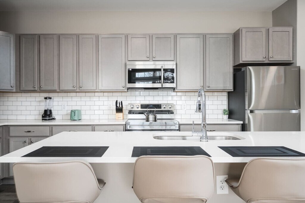 Feel at home in this newly built, luxury 2-bedroom retreat nestled in tranquil Whitestown, just 25 minutes from downtown Indianapolis with convenient I-65 access. Ideal for families attending events at Grand Park Sports Campus or professionals commuting to Indianapolis, this apartment features a gourmet kitchen, cutting-edge smart home technology, and generous living spaces. This bright, modern 2-bedroom retreat offers an open-concept living and dining area, a fully equipped kitchen with granite counters and stainless steel appliances, and in-unit washer and dryer. Enjoy high-speed fiber internet, a 55" Smart TV with Netflix and Hulu, and a dedicated workspace. Central heating and AC ensure comfort year-round, while a private rear patio provides a relaxing outdoor space. Free parking is provided in front of the building. A car is recommended for convenience, with easy access to I-65 and rideshare services available. Guests staying longer than 28 days will be responsible for paying utilities used during their stay. Nestled in Whitestown's growing Anson development, this home offers suburban tranquility with convenient amenities. The neighborhood features tree-lined streets, community parks, and walking trails perfect for morning strolls. Within 5 minutes, you'll find the Whitestown Parkway shopping district with Target, Lowe's, Meijer, and numerous restaurants. The charming village of Zionsville is just 5 minutes east, offering boutique shopping and dining along the historic brick Main Street. Families will appreciate being just 10 minutes from Grand Park Sports Campus in Westfield and close to excellent Boone County schools. Whitestown's central location provides easy access to Indianapolis attractions while enjoying a peaceful residential setting. Unauthorized access to common amenities without prior approval is subject to a fine of $100 per person per day, and any damage will incur a charge of a minimum of $150. Only registered guests can use the amenities, and they are not for commercial use. Check-out time is 11 am unless otherwise approved. Smoking is strictly prohibited inside or outside on the patio, balcony, parking lot, or within 50ft of the property, with a $300 fine for violations. Parties and events are strictly prohibited, with a $500 fine and possible eviction for violations. Unauthorized pets incur a $250 fee. Missing or damaged items will be charged at direct replacement cost plus a fine of up to $300. House rules violations can result in a fine of up to $1000 and/or eviction. Noise can transfer easily to neighbors through walls and floors, so guests are asked to respect the quiet residential neighborhood. Includes a dedicated workspace with high-speed fiber internet, ensuring a seamless remote work-friendly environment. A laptop computer is not included. [SI]