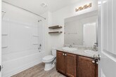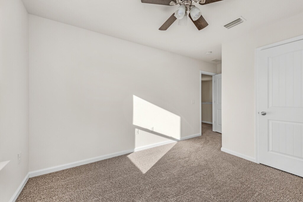 Welcome home to this spacious and thoughtfully designed 4 bedroom, 2.5 bathroom home offering approximately 1,950 sq ft, conveniently located just minutes from shopping, dining, schools, and more!You'll love the open and functional floor plan featuring a bright kitchen with room for 3-4 barstools, ample cabinet space, and two pantries--perfect for everyday living and entertaining alike.All four bedrooms and the laundry room are located upstairs, providing a great separation of living and resting spaces. Each bedroom offers comfortable sizing for sleep, study, or hobbies--roommates welcome! The primary suite is a true retreat, complete with a garden tub, 5-ft shower, double vanities, water closet, and a large walk-in closet.Step outside to enjoy the fully privacy-fenced backyard,