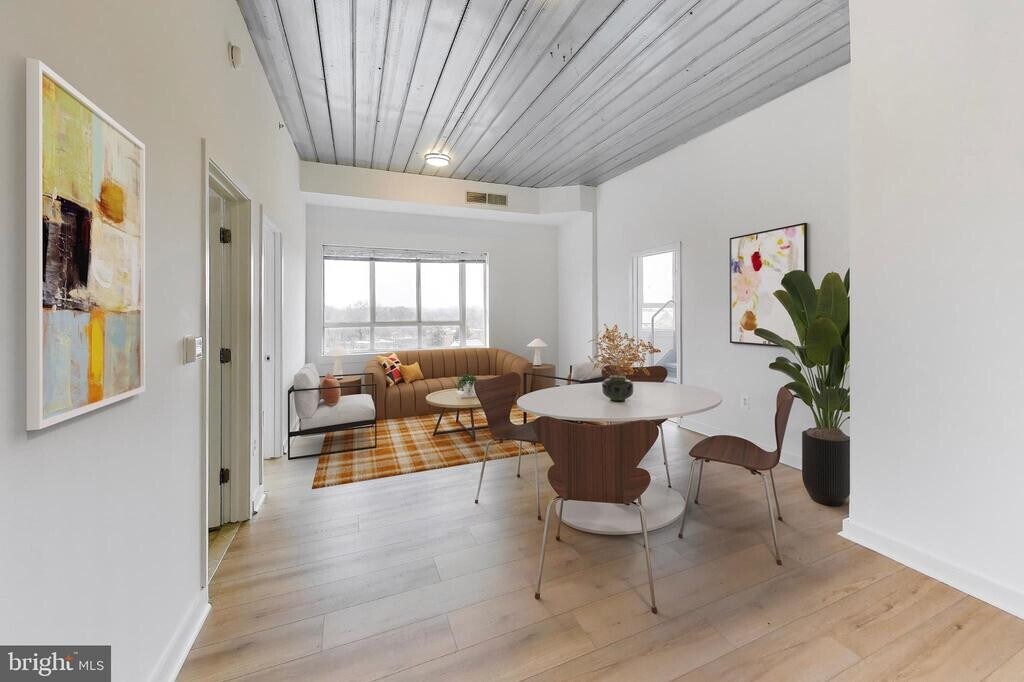 Welcome home to this Brightwood loft condo with assigned garage parking. Move-in ready, it offers two bedrooms and two full baths, including a primary suite with its own ensuite bath. The kitchen features stainless steel appliances, black granite countertops, and a classic subway tile backsplash. Recent upgrades include a brand-new HVAC system and air compressor for added peace of mind. Other highlights include an in-unit washer and dryer, ample storage, and new luxury vinyl plank flooring throughout. The second bedroom sits on the opposite side of the living area, away from the primary suite, with the guest bath conveniently nearby, ideal for visitors or a home office. The Lofts at Brightwood is a pet-friendly building featuring a secure lobby with coded package concierge, elevator access, and a shared rooftop deck with expansive city views and plenty of space to relax and watch the sunset. A new coffee shop located right in the building offers a unique perk for residents, with membership options that include coworking space, private booths for focused work, and member discounts. In the evening, the space transitions into a neighborhood bar. Daily errands are easy with a Walmart located directly across the street, along with nearby cafés and big-box shopping. Rock Creek Park is just two blocks away for trails and green space, and The Parks at Walter Reed offers additional dining and retail options. Nearby Metro stations and bus routes provide convenient access to Silver Spring and the rest of DC while maintaining a quiet, convenient neighborhood feel. Virtual staging was used in photos.