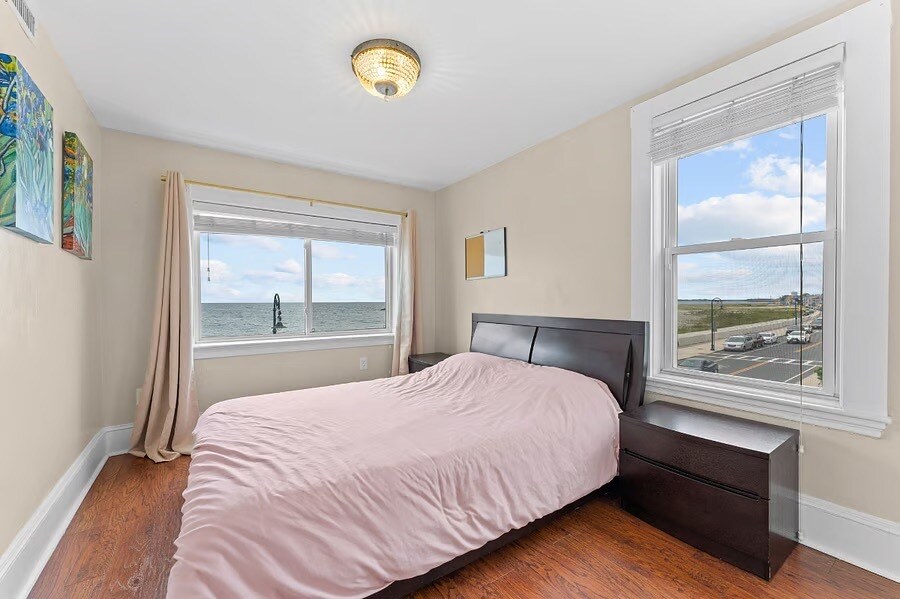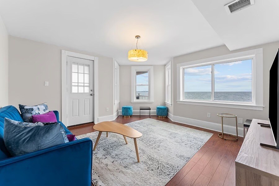 Experience luxury in this breathtaking top-floor apartment, where panoramic ocean views create the perfect backdrop for a romantic escape, family vacation, or peaceful retreat. This beachfront haven seamlessly blends modern elegance with coastal charm. Private terrace as you take in the endless sea vistas, or stroll just steps to the sandy shores. 20 min from downtown, 15 min from the airport. Beach access, nearby local dining, WiFi, a smart TV, and AC, every detail is designed for comfort. Two bedrooms, one bathroom and kitchen.This tranquil residence is just steps from the Orient Heights Blue Line, putting Boston within easy reach.In a quiet residential neighborhood with an ocean promenade. Additional amenities include on-site laundry and air conditioning for summer.