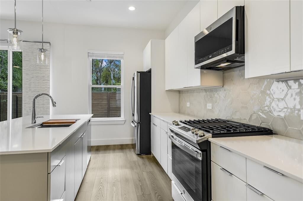 Enjoy a prime Cedar Park location nestled between a quiet residential neighborhood and the expansive **Lakeline Park**, a 200-acre outdoor destination offering over 3 miles of hiking and biking trails, fishing piers, kayak launch, playgrounds, pavilions, and scenic lake views. Nearby shopping, dining, and entertainment can be found at **Lakeline Mall**, along with a variety of local restaurants and everyday conveniences. Commuting is made easy with quick access to **183A Toll Road** and **State Highway 45**, and the home is located within **Leander Independent School District**. Beautiful contemporary 3-bedroom, 2.5-bath, two-level townhome featuring a bright and open floor plan with 10-foot ceilings on the main level and expansive windows that provide abundant natural light. The kitchen includes a center island, quartz countertops, and stainless steel appliances, opening to the main living and dining areas. Interior features include luxury vinyl plank flooring throughout with no carpet, ceiling fans, and 2-inch faux wood blinds. A versatile flex space leads to a rooftop balcony, offering additional outdoor living space. Additional highlights include a washer and dryer, a private backyard with patio, and a fenced yard with wrought iron and composite fencing. HOA-maintained lawn care provides added convenience. Pet-friendly property). Applicant to verify schools, square footage, and any information deemed important. MLS ID 2437289