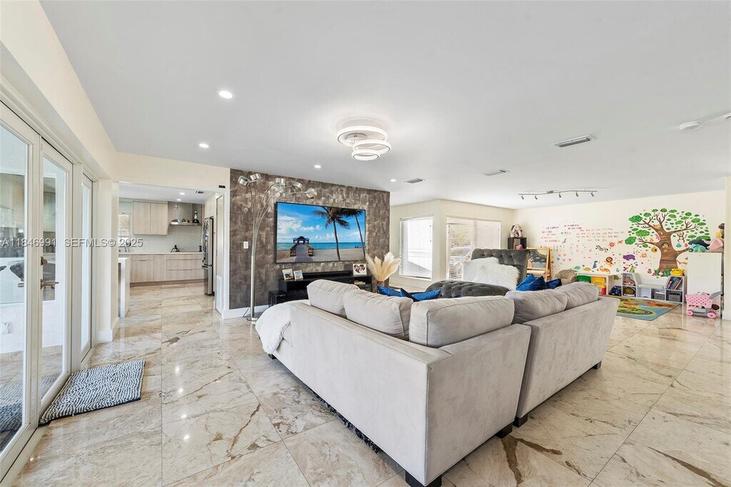 UNDER 1 YEAR LEASE. The house is available for rent UNTIL July 15 2026. Beautiful, spacious, modern home with a big pool for the family and friends to enjoy. It's located in the walled community of Gables Edge in SOUTH MIAMI, blocks away from University of Miami and A+ school. Open living room with marble floor through out, leading to the terrace and pool deck. A custom design kitchen with modern appliances, wall oven, wine cooler, quartz countertop with the island and access to the patio. Tesla charger, solar roof, pool, impact windows and doors are some extras this property offer MLS # A11846991
