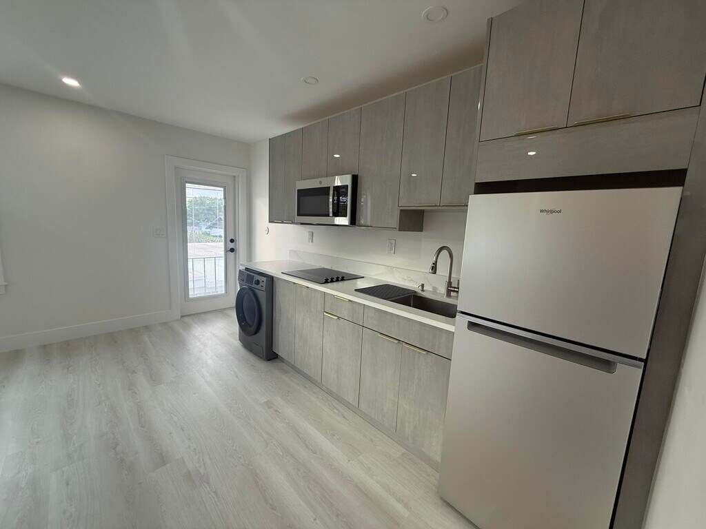 Newly renovated upstairs one-bedroom,one-bath apartment accessed via stairs and available for immediate occupancy in the SoSo area. This light and bright unit has been fully updated from top to bottom,featuring new flooring and modern finishes throughout. The kitchen is equipped with a cooktop,microwave,refrigerator,and washer/dryer combo. Located on S. Dixie Highway above commercial space,offering convenient access to nearby restaurants,shops,tennis,golf,the Intracoastal Waterway,beaches,and downtown West Palm Beach. Two residential units are located side-by-side; this listing represents one individual unit. Shared rooftop terrace. Street parking. No pets. First month,last month,security deposit,and background check required. MLS ID R11148208