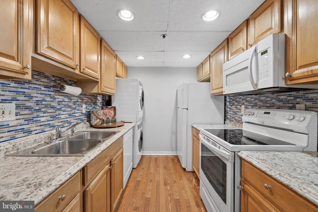 Step into this bright and modern 2-bedroom, 2-bath condo featuring 1 assigned parking space (with the option to rent a second for $2,200/month) and all the comforts of contemporary living. The home boasts stylish LVP flooring, a sun-filled open layout, and a private balcony with serene tree views—perfect for morning coffee or relaxing evenings. Enjoy two walk-in closets and a sleek, updated kitchen for added convenience. This community offers fantastic amenities, including:Outdoor pool & hot tub; Fitness center; Tennis & basketball courts; Picnic/grill station; Extra storage. The condo covers heating, A/C, water, trash, concierge service, 24-hour security cameras, and a nighttime guard, making it low-maintenance living with peace of mind. •••Vacant unit with virtually staged photos to help you envision the space•••