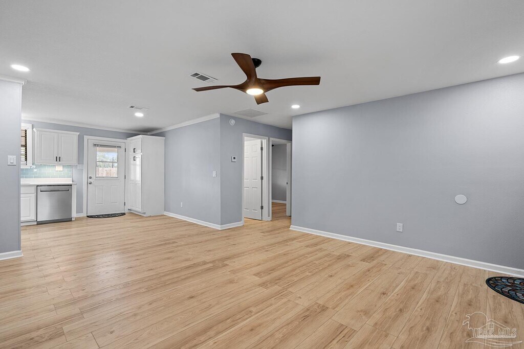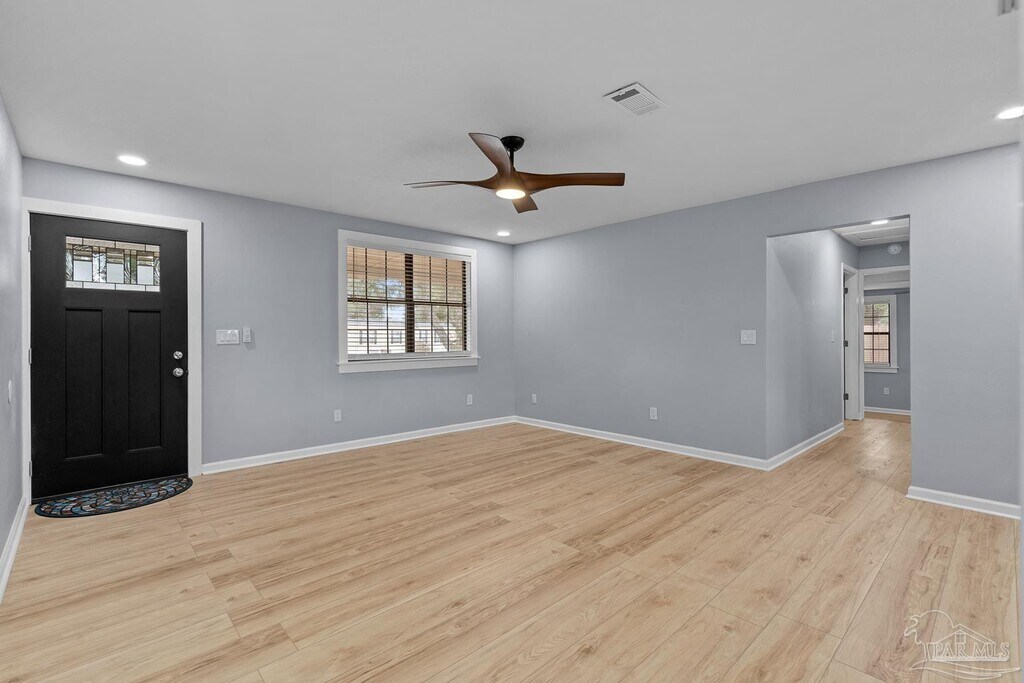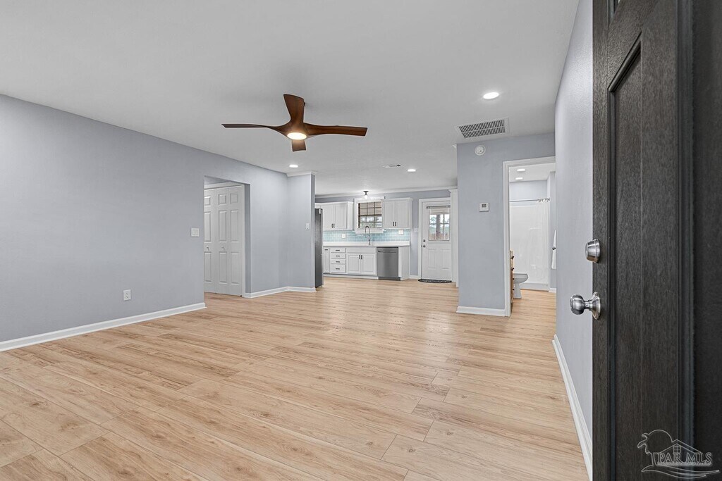 Welcome to the most updated 4 bed/3 full bath in Gulf Breeze! This home has been over updated, so the renter will be the beneficiary. All new, same high-end, 8" wide, light, wood-look, Luxury Vinyl Plank flooring throughout entire home. The living room has a high-end fan and dimmable recessed, adjustable, LED lights. Completely remodeled kitchen, with quartz, glass subway tile backsplash, dimmable undercabinet lighting, new appliances, painted cabinets with new hardware. All bathrooms have new vanities, showers, baths, & toilets. The new remodeled primary suite features a walk-in closet with organizer, & the new ensuite bathroom features an amazing large tiled shower, 72" wide end vanity piece, new toilet, recessed lighting, and fan. Outside you will see all fresh paint & new shutters. We LOVE the porches on this house. There is a freshly updated 50'x6' front porch and 31'x8' back porch. The recessed lights on the back porch are dimmable for nice quite evenings. Quarterly insect control with Rocky's. The smart storage in this home includes, the 7.5x 8' storage room, 7x8' storage shed, linen closet, walk-in closet in the primary, and the super efficient pantry piece off the kitchen. The layout of this home makes it very functional for a family of 5 easily. There is a new 8 foot privacy fence around the back yard supported with all 6x6 posts for extra sturdiness. There is a 10ft wide double gate on the east and a 4ft wide gate on the west sides of the home. You will love this quite yet convenient location. 1 minute from the new Soundside High School and just across Hwy 98 from the Zoo. 15 minutes to Navarre Beach and 20 minutes to Pensacola Beach. If you have champagne taste on a beer budget this home is for you! $2200/month $2200 security deposit. 1st and last months rent required up front. No Pets.