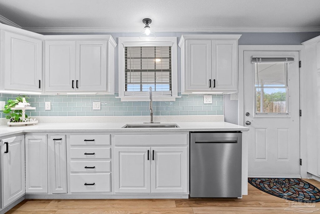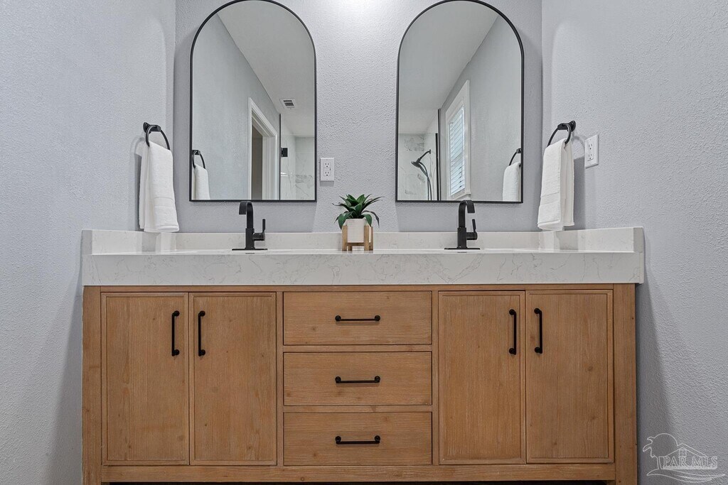 Welcome to the most updated 4 bed/3 full bath in Gulf Breeze! This home has been over updated,so the renter will be the beneficiary. All new,same high-end,8" wide,light,wood-look,Luxury Vinyl Plank flooring throughout entire home. The living room has a high-end fan and dimmable recessed,adjustable,LED lights. Completely remodeled kitchen,with quartz,glass subway tile backsplash,dimmable undercabinet lighting,new appliances,painted cabinets with new hardware. All bathrooms have new vanities,showers,baths,& toilets. The new remodeled primary suite features a walk-in closet with organizer,& the new ensuite bathroom features an amazing large tiled shower,72" wide end vanity piece,new toilet,recessed lighting,and fan. Outside you will see all fresh paint & new shutters. We LOVE the porches on this house. There is a freshly updated 50'x6' front porch and 31'x8' back porch. The recessed lights on the back porch are dimmable for nice quite evenings. Quarterly insect control with Rocky's. The smart storage in this home includes,the 7.5x 8' storage room,7x8' storage shed,linen closet,walk-in closet in the primary,and the super efficient pantry piece off the kitchen. The layout of this home makes it very functional for a family of 5 easily. There is a new 8 foot privacy fence around the back yard supported with all 6x6 posts for extra sturdiness. There is a 10ft wide double gate on the east and a 4ft wide gate on the west sides of the home. You will love this quite yet convenient location. 1 minute from the new Soundside High School and just across Hwy 98 from the Zoo. 15 minutes to Navarre Beach and 20 minutes to Pensacola Beach. If you have champagne taste on a beer budget this home is for you! $2200/month $2200 security deposit. 1st and last months rent required up front. No Pets.