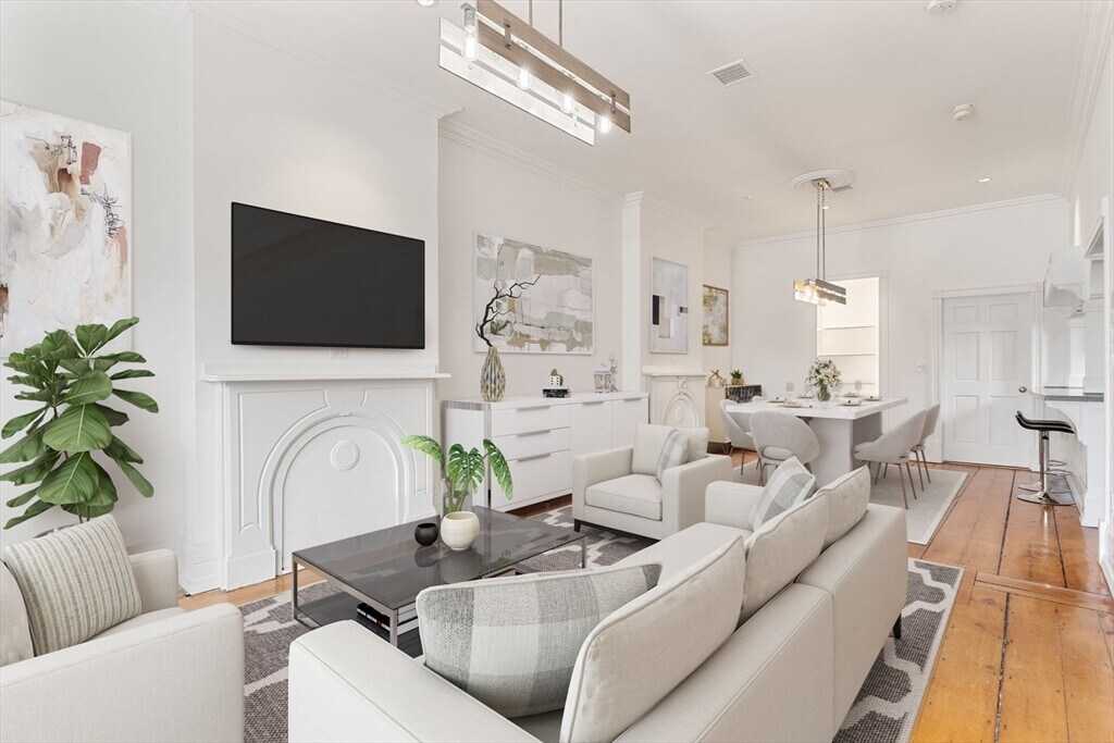 Stunning penthouse duplex with Harbor Views! Experience luxury waterfront living in this penthouse duplex featuring exposed brick walls and hardwood flooring. Primary Bedroom boost expansive private deck offers breathtaking views of the Harbor Islands,Seaport,waterfront,and the Zakim Bridge. This recently renovated home showcases views from every room in this beautifully converted 3-family brownstone on the best street in Jeffries Point. Open kitchen and living room layout with windows flooding the home with natural light. The kitchen features stainless steel appliances. Washer/Dryer located in unit! Central air-conditioning,forced hot air and hardwood floors throughout complete this rare offering. MLS# 73427710